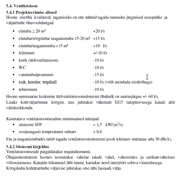 Ventilatsiooniprojekt sisalsab plaani jooniseid, seletuskirja, spetsifikatsiooni ja insener tase 7 kinnitust.