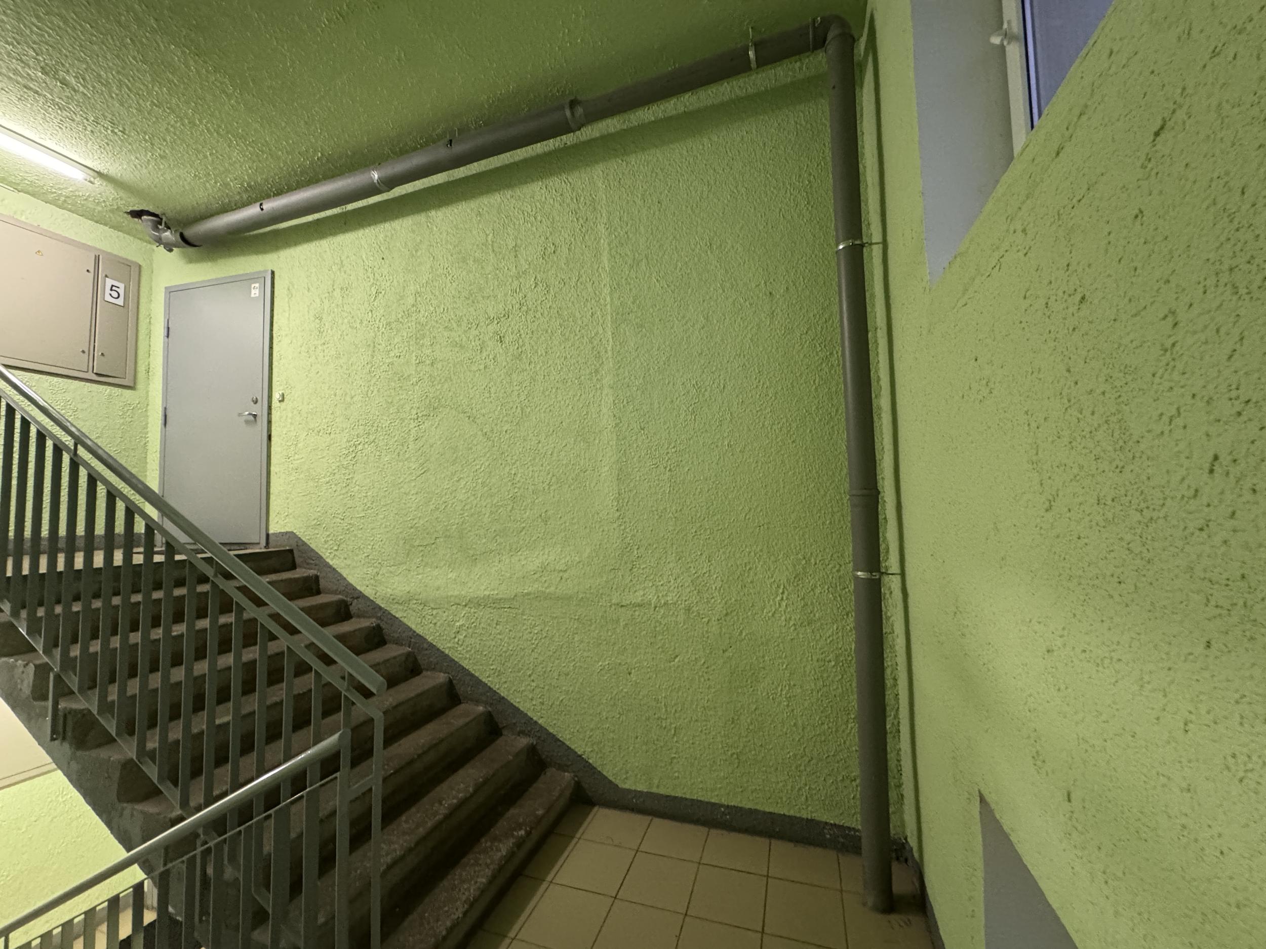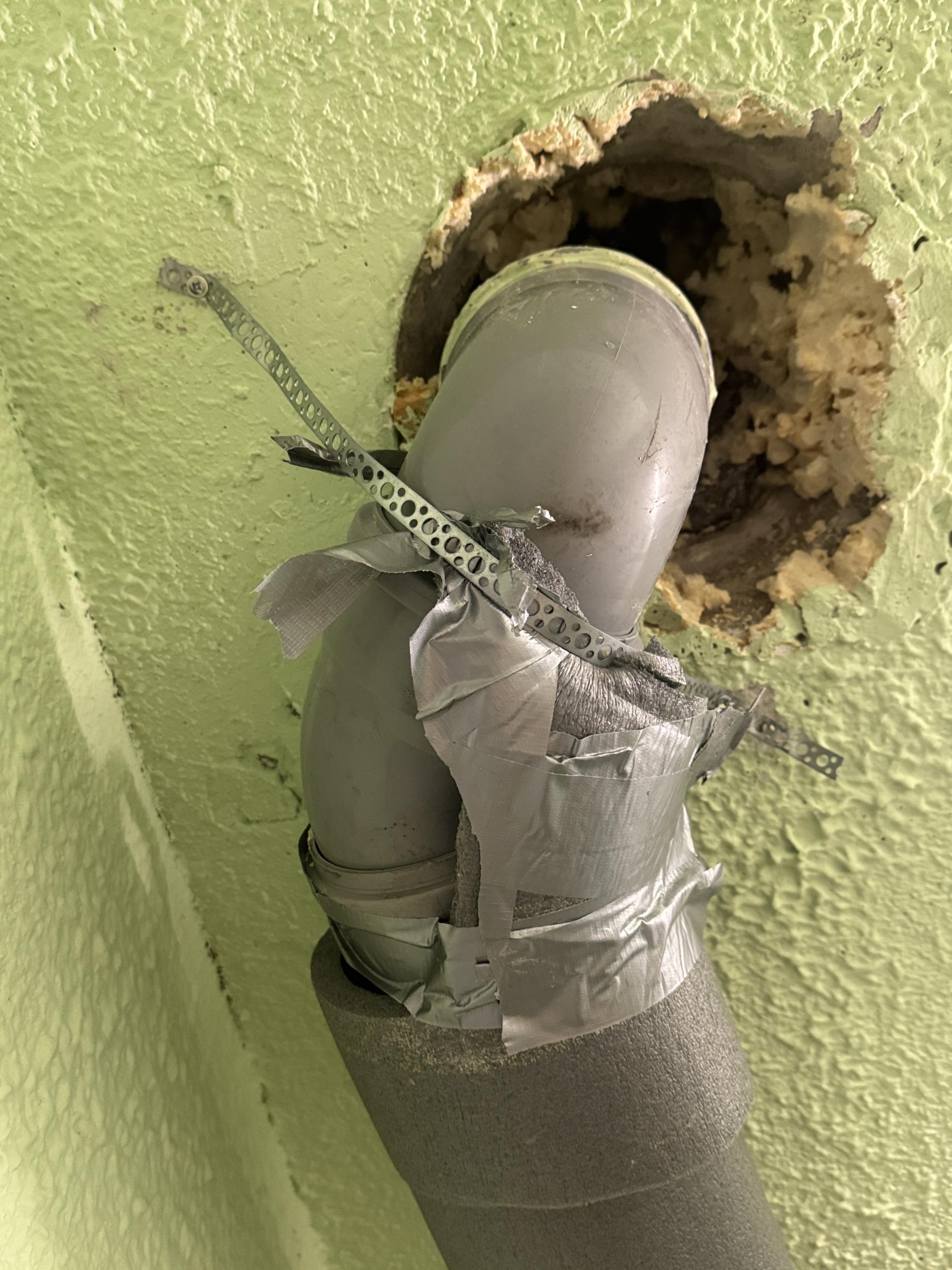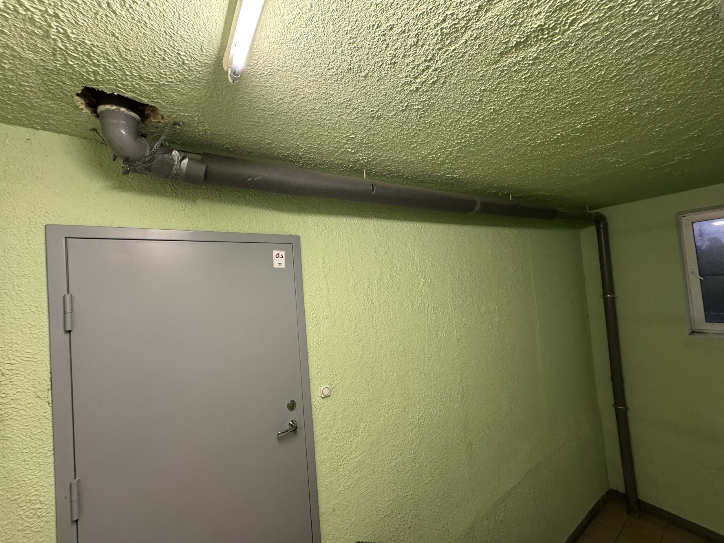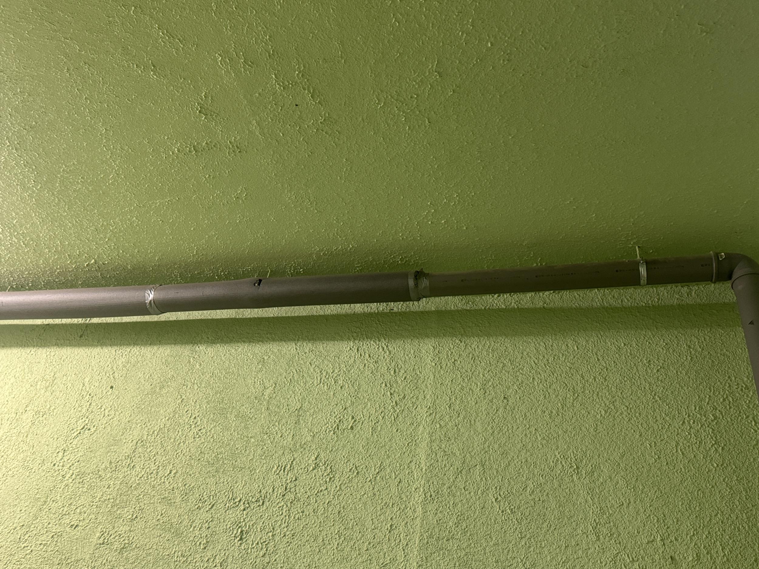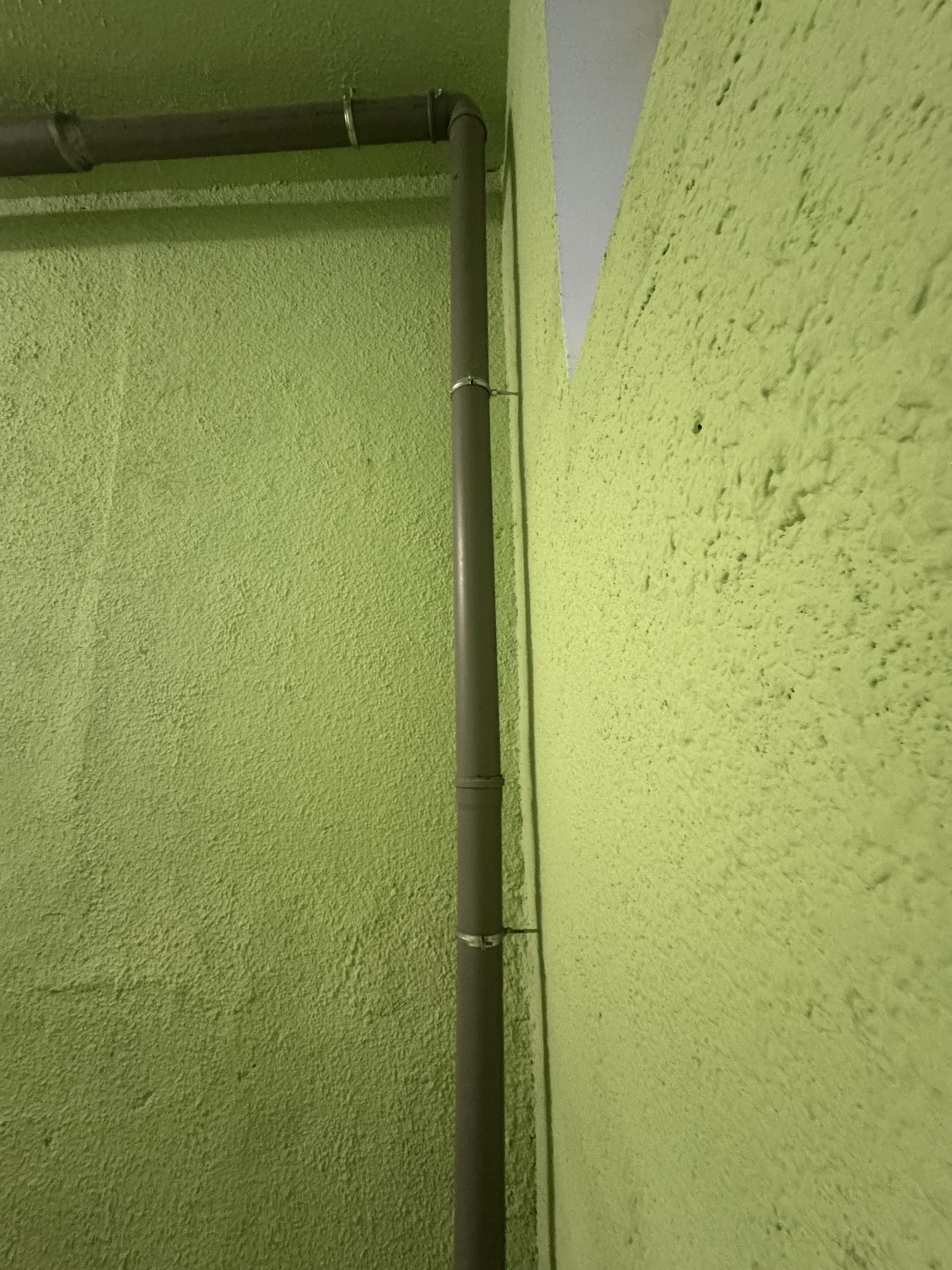Vaja oleks katuselt alla tuleval torul topeltpõlv ära kaotada ja alles jätta ainult L põlv, ilm selgelt trepikoja laes oleva torustiku kinnituse ankrud peaks puurima lakke uued, laest tuleval torul võiks olla suurem kaldenurk.