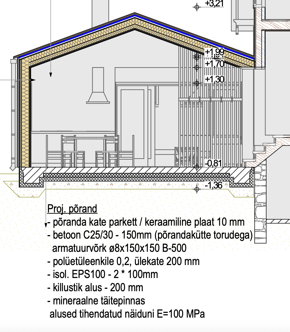 - betoon C25/30 - 150mm (põrandakütte torudega)
