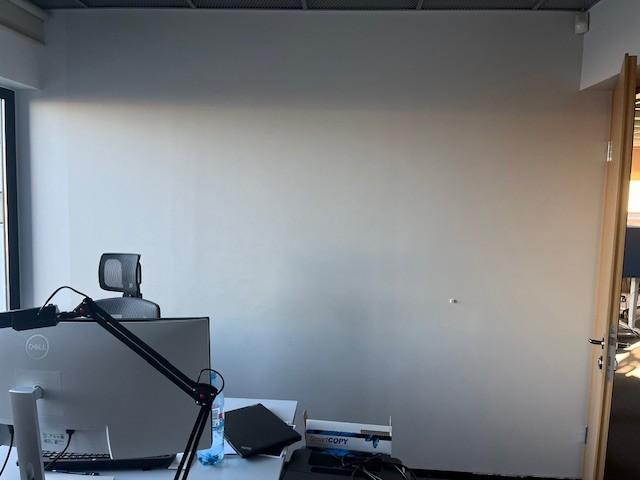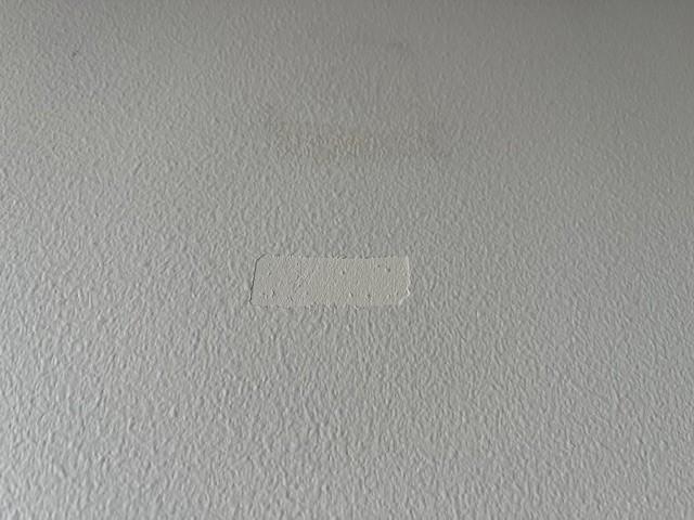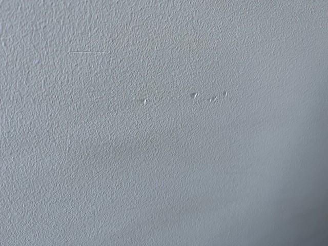 Sein 1: vajab üle värvimist (et määrdunud seina värskendada) ja veidi vist ka krohviparandusi (vt teibi jälg ja auk seinas järgmistel piltidel). Lisapiltidel seina 1 kohta on toodud lähedalt välja kaks kohta kus väikesed augud vajavad pahtli parandust + ühes kohas on suurem teibi jälg.