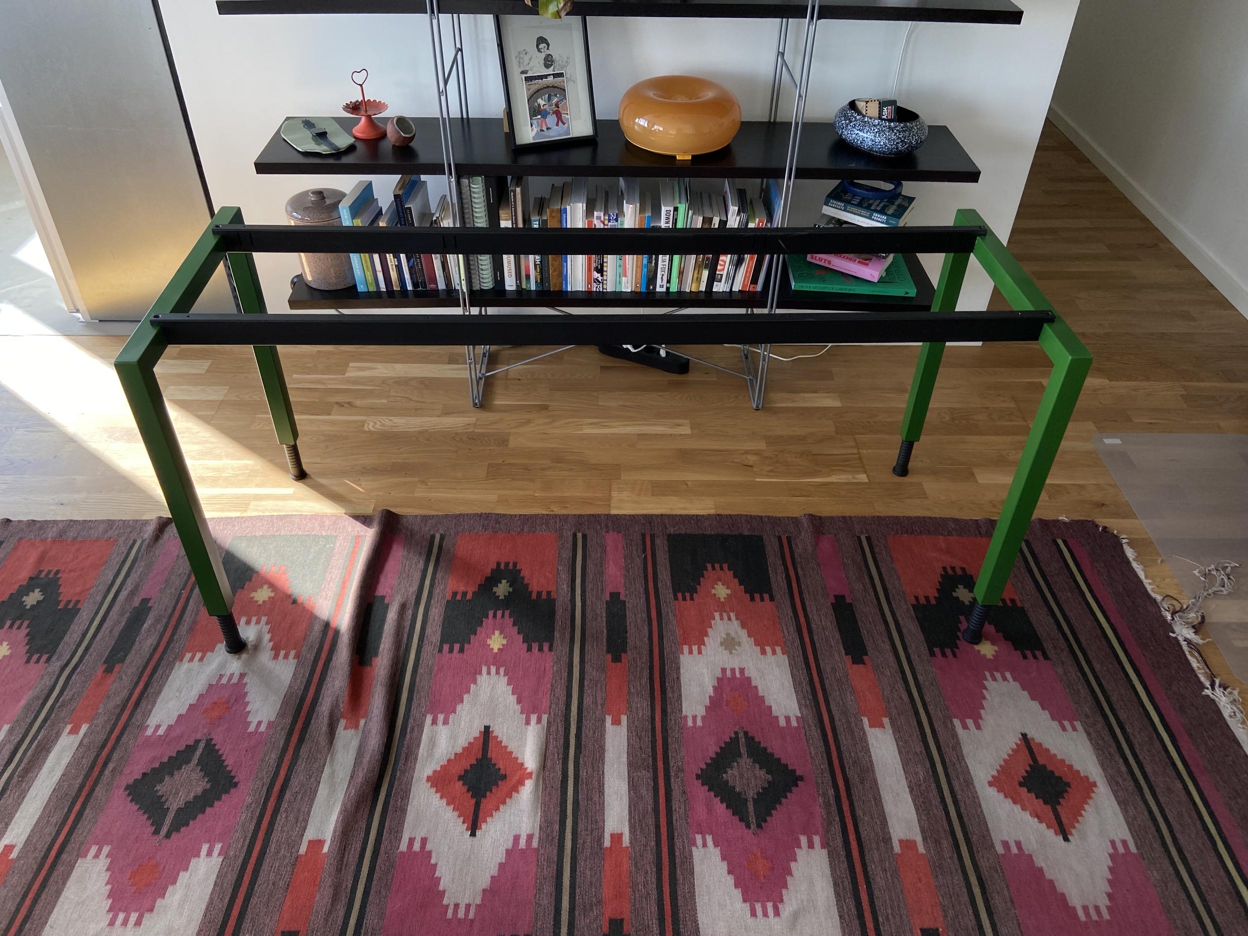 Oleks vaja kaks metallist lauajalga üle värvida. Hetkel need värvitud roheliseks spreivärviga, mis tuleb maha ja ei ole väga vastupidav.