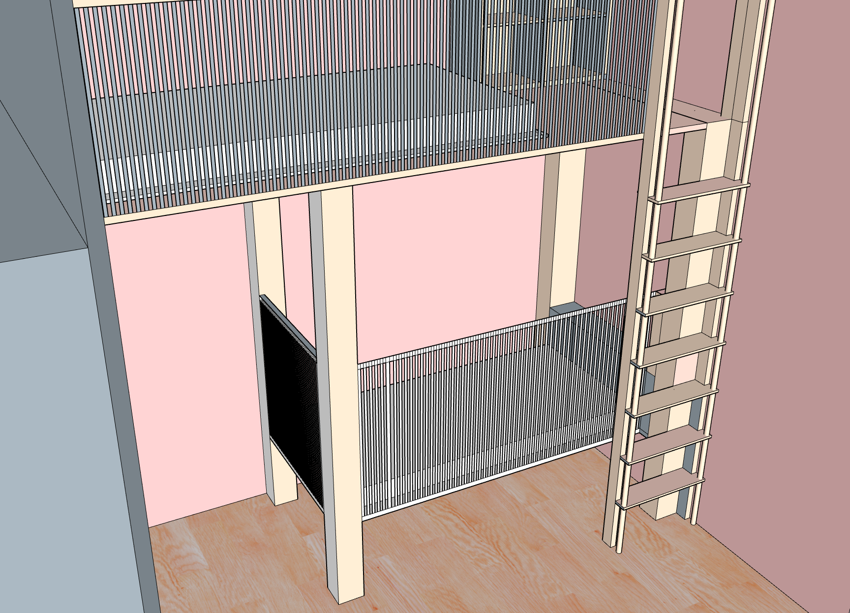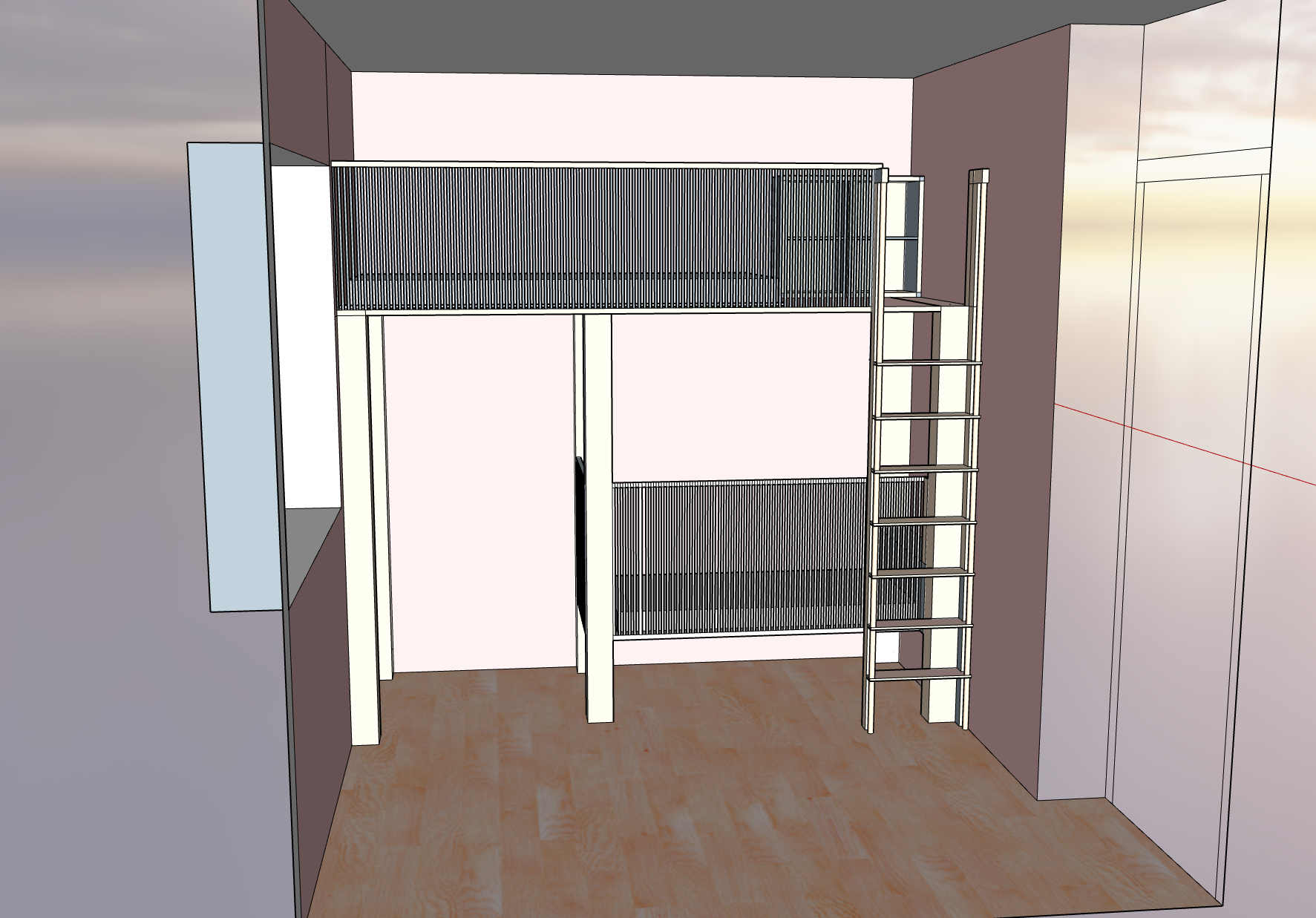 Narivoodi ja selle paigaldamine lastetuppa. Materjali valib töö teostaja, eelistatult puit. Värvitoon - hele. Alumine voodi peab mahutama madratsi suuruses 60cm x 120cm ja ülemine 70cm x 160cm .