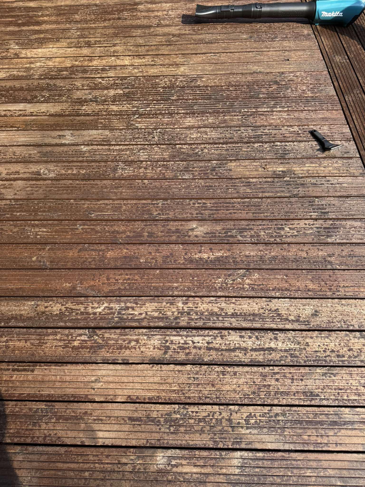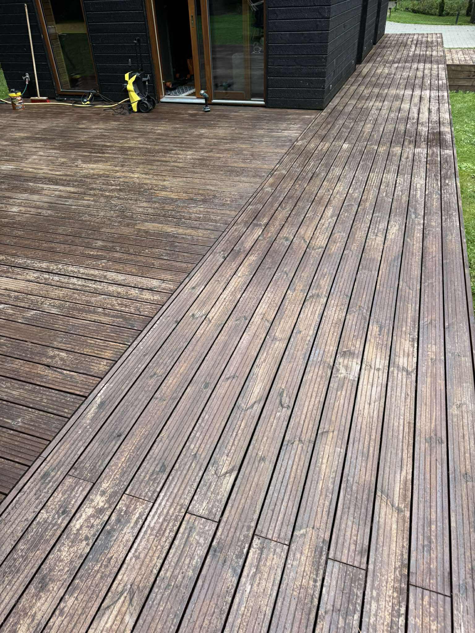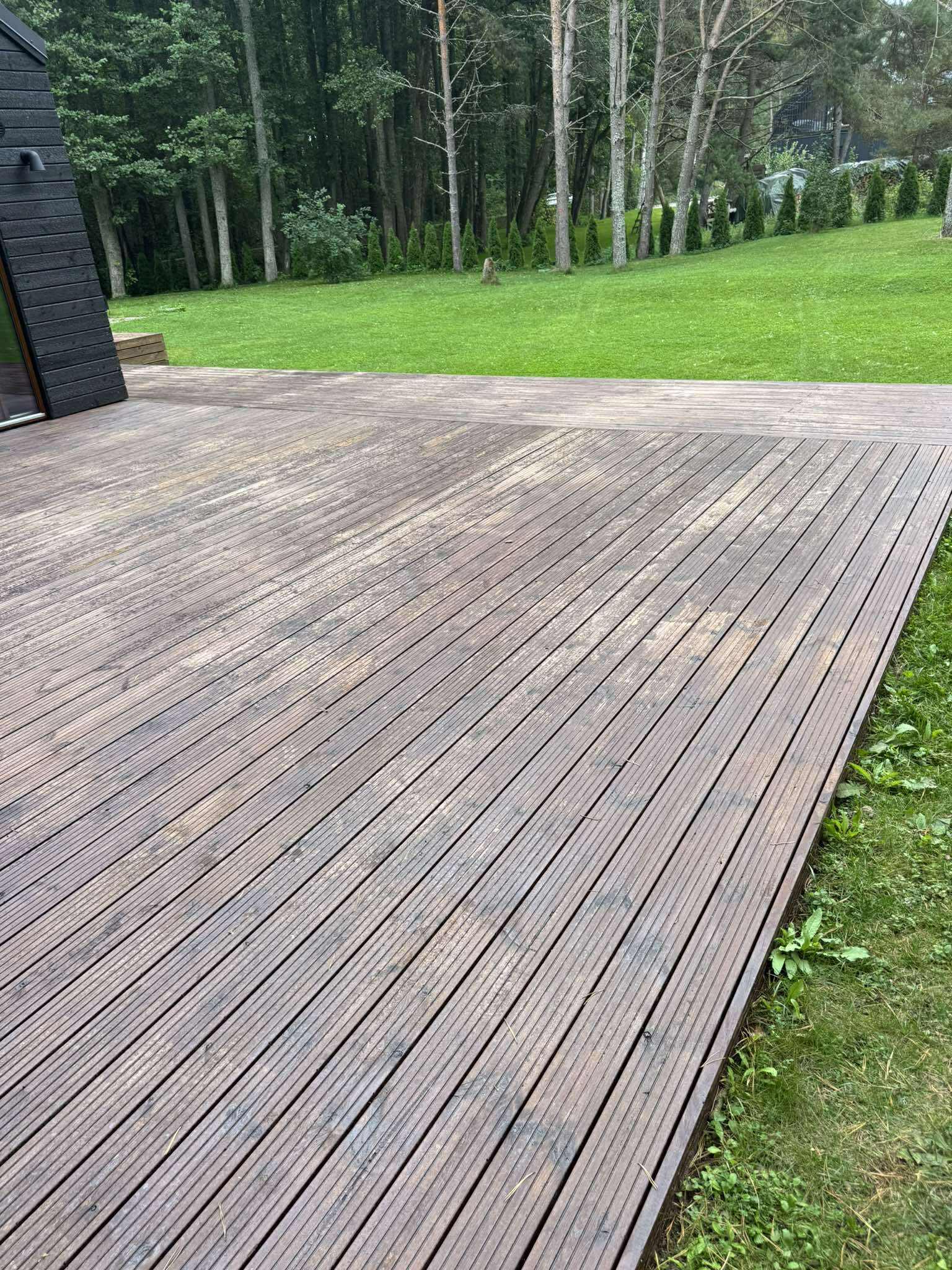 Terrass sai hiljuti keemiaga puhastatud ja õlitatud, kuid järgmisel päeval tuli ootamatult paduvihm. Nüüd on pind laiguline ja kohati on üleliigset õli, mida keemiliselt eemaldada ei õnnestu. Soovin lasta teha õrna lihvimise (üleõli eemaldus) ja seejärel uuesti ühtlase õlikihi.