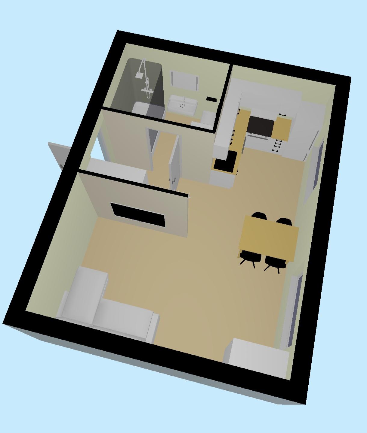 Põrand roovitus, osbplaat ja laminaatparkett Seinad Kipsplaat metallkarkassil, pakteldatud ja struktuurvärv Lagi pahteldatud ja värvitud valgeks Tahveluksed Köögi valmidus:kannad seinas ja pistikupesad WC ja dushi ruum plaaditud ja lagi värvitud, äravool lahendatud Aknapõsed vormistatud, liistud paigaldatud Kaabeldus seintes, pistikupesad Värvitoonid ja viimistlusplaadid koostöös tellijaga Parimat, Andres |