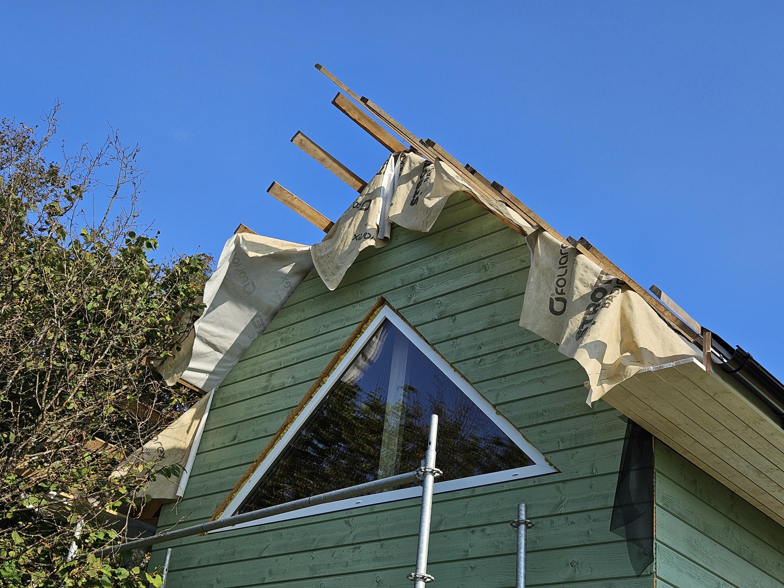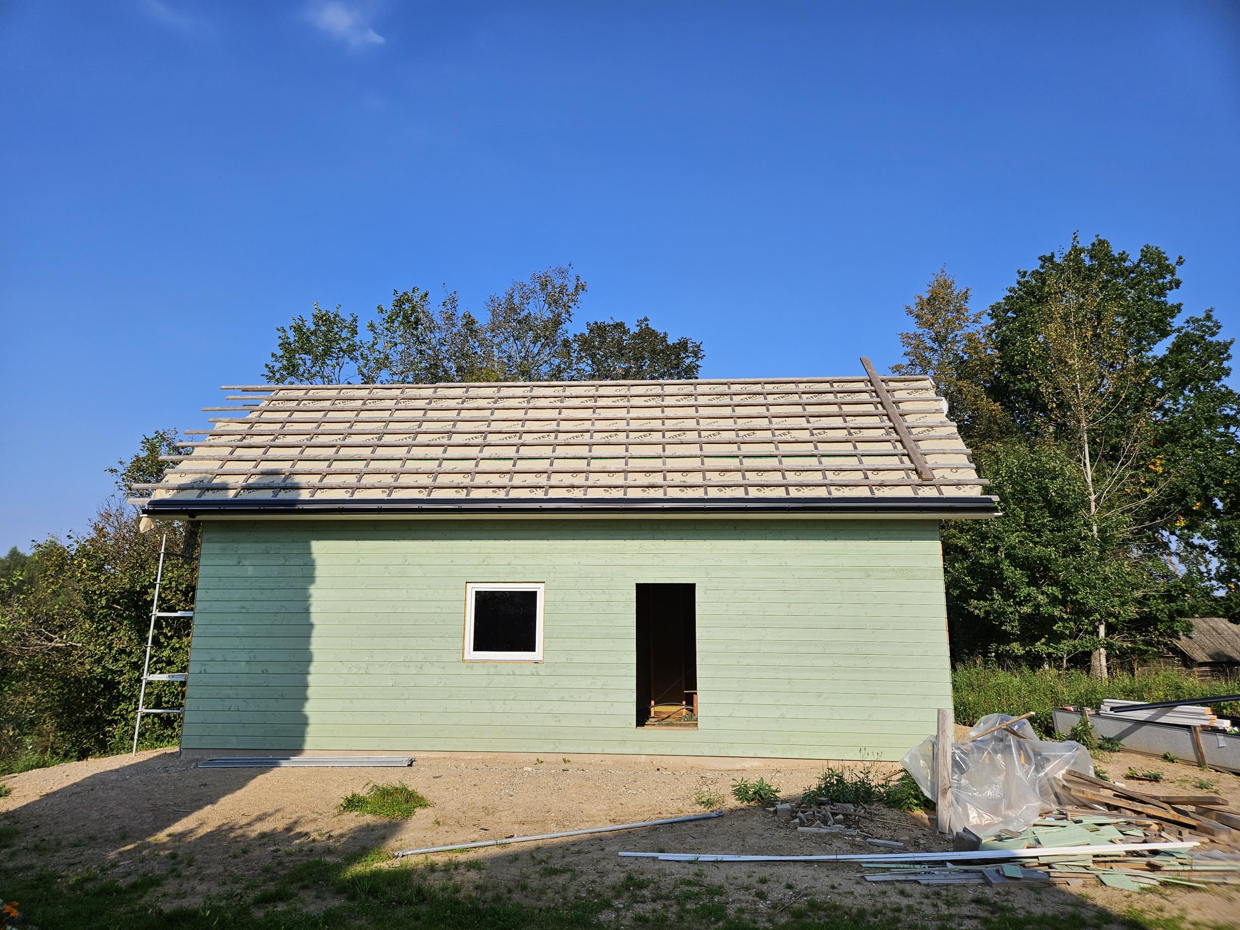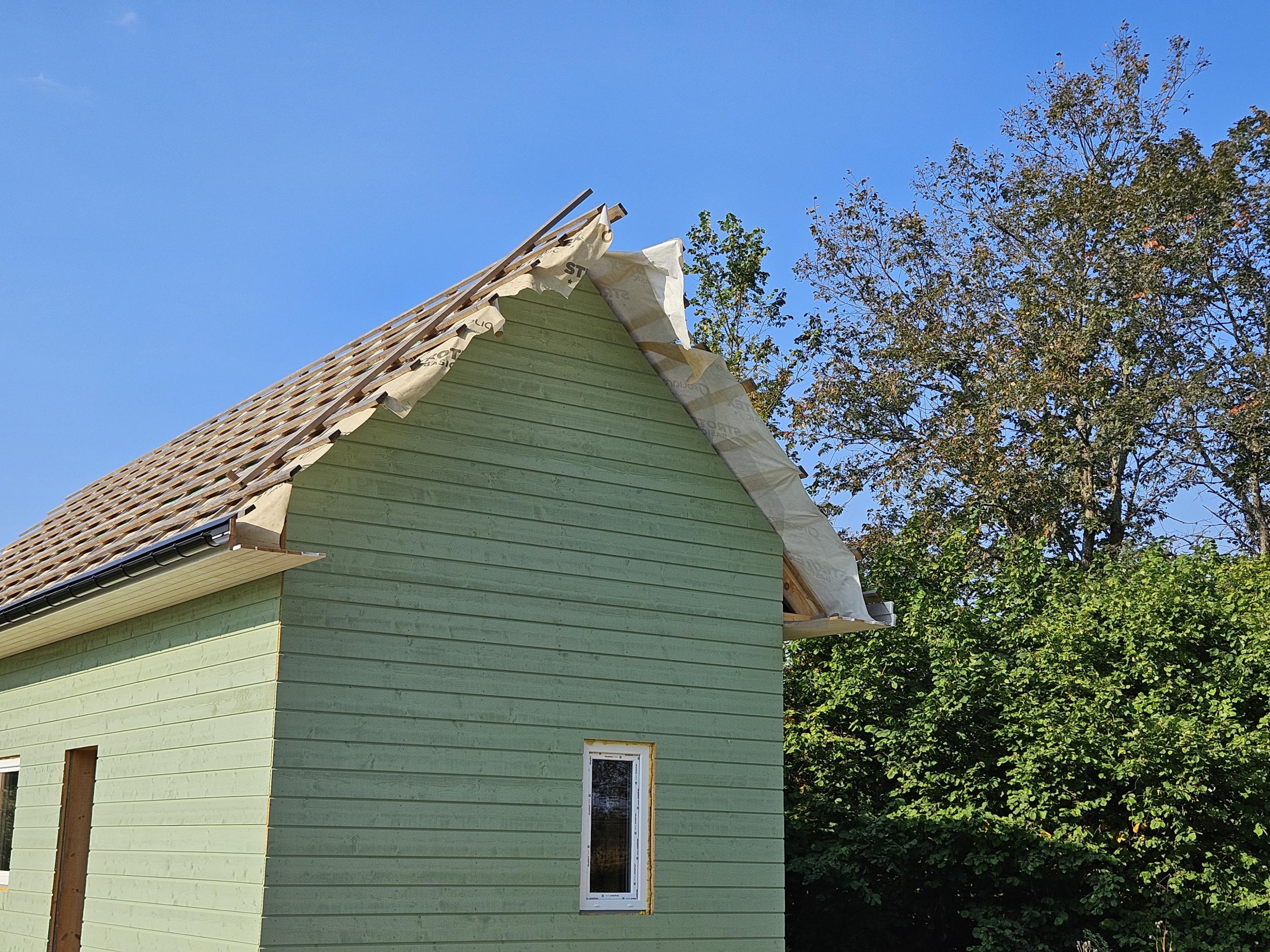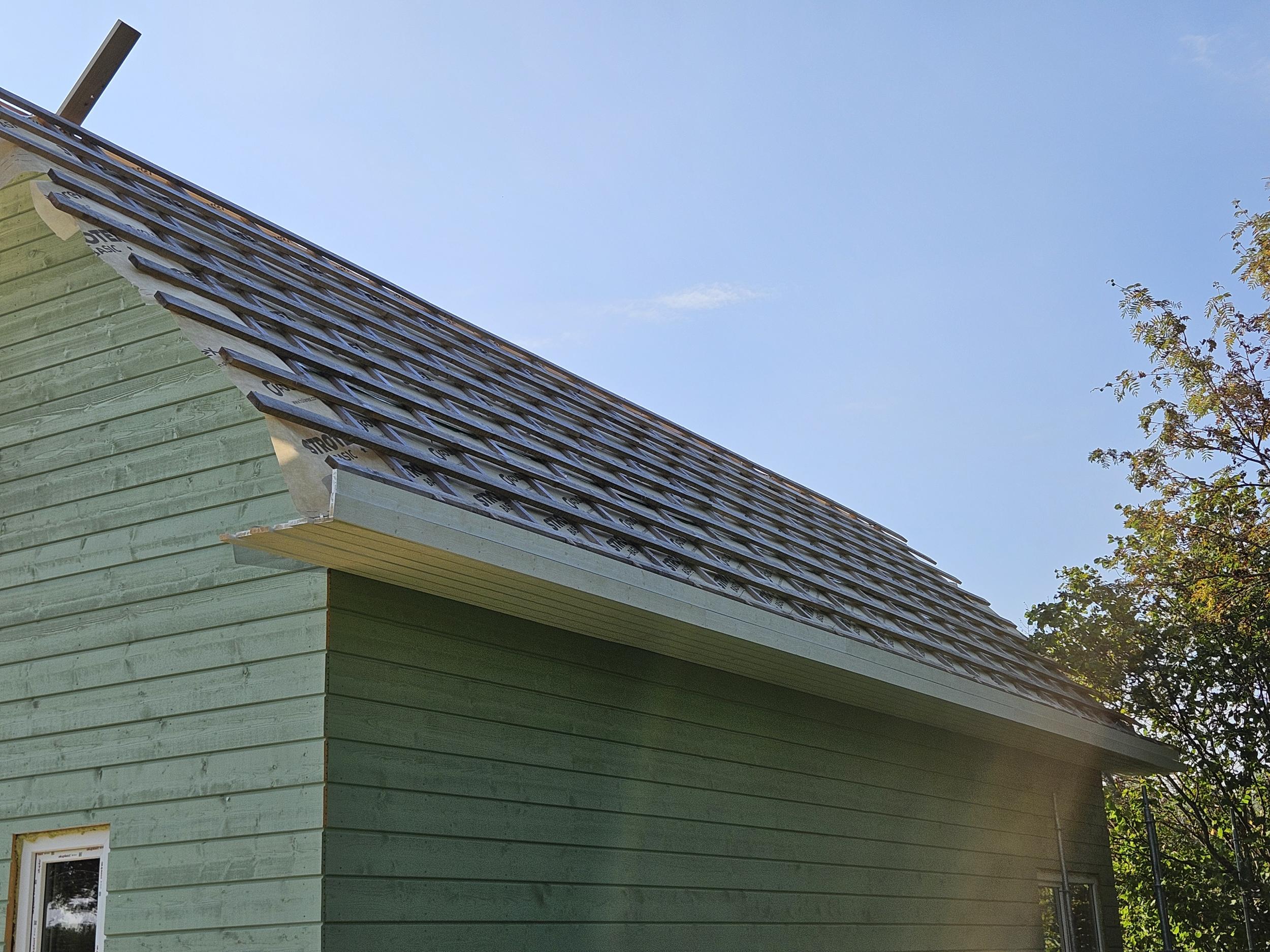 Vaja paigaldada Klassik profiiliga katust 98m2 ning koos sellega lumetõkked, rennid jms ning valmis ehitada räästakastid. Enne seda on vaja ka roovitus tihedamaks ehitada. Hetkel vahed liiga laiad ja iga roovi vahele peaks veel ühe paigaldama.