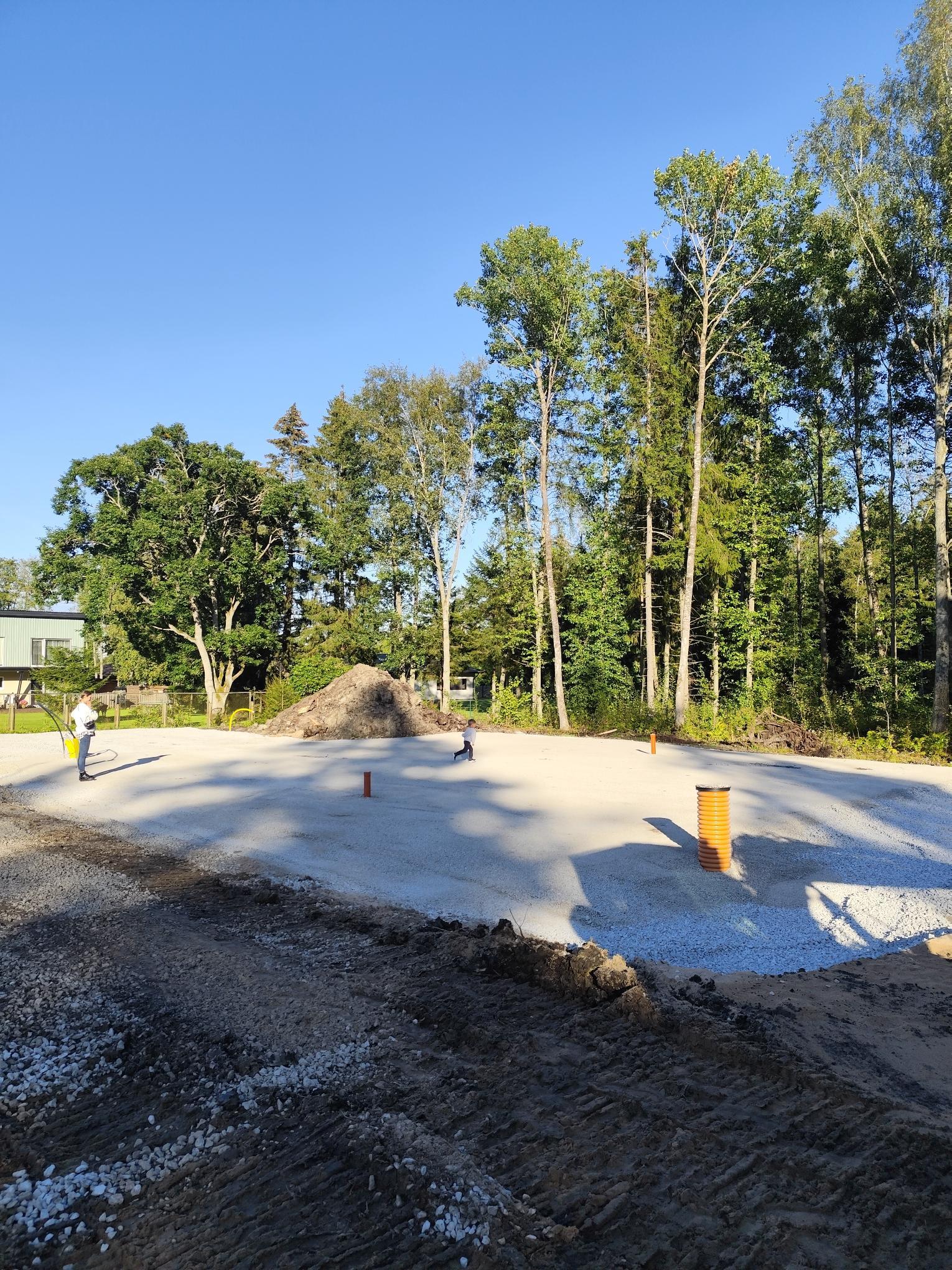 Vajalik on killustikuga ettevalmistus plaatvundamendi töödeks. Vajalik umbes 1 väiksem koorem 4/16 killustikku. Killustiku kiht tasandada, et oleks võimalik paigaldada L-plokke ning geodeediga paika panna vundamendi mahamärkimine ja kõrgus.