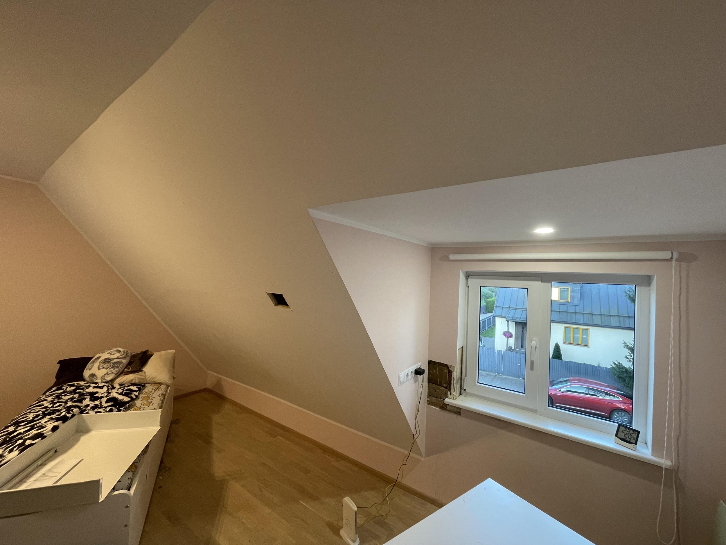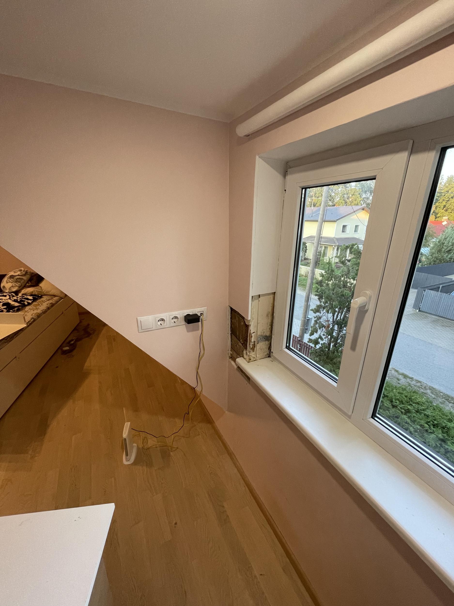Vajalik on seinast eemaldada kipsplaat ning uuendada soojustus ja uuesti kipsiga katta. Kaldasein on 3,3m lai ja 3,1m kõrge. Vintskapi laius 1,6m.