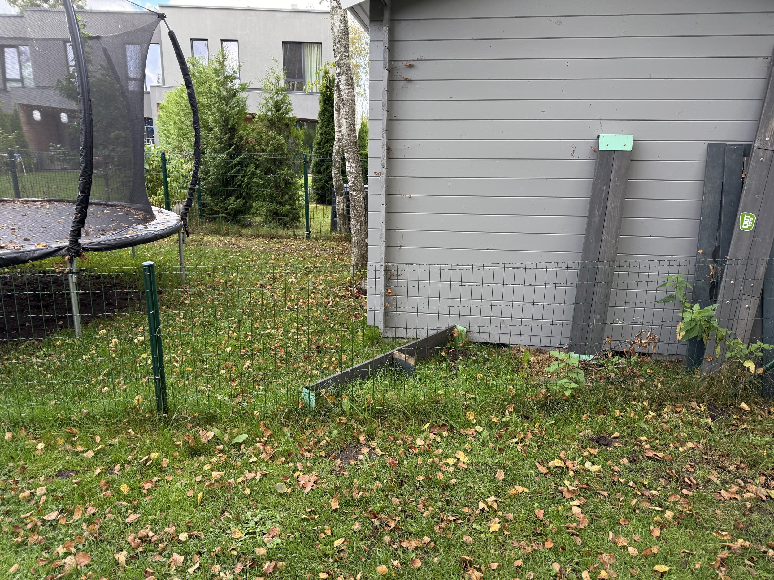 Teine töö osa on aia teises otsas kuuri ja batuudi juures madala värava ehitus, et oleks naabri aiaga ühendus. Pildina kaasas ka soovituslik madal värav (laiusega 90cm).