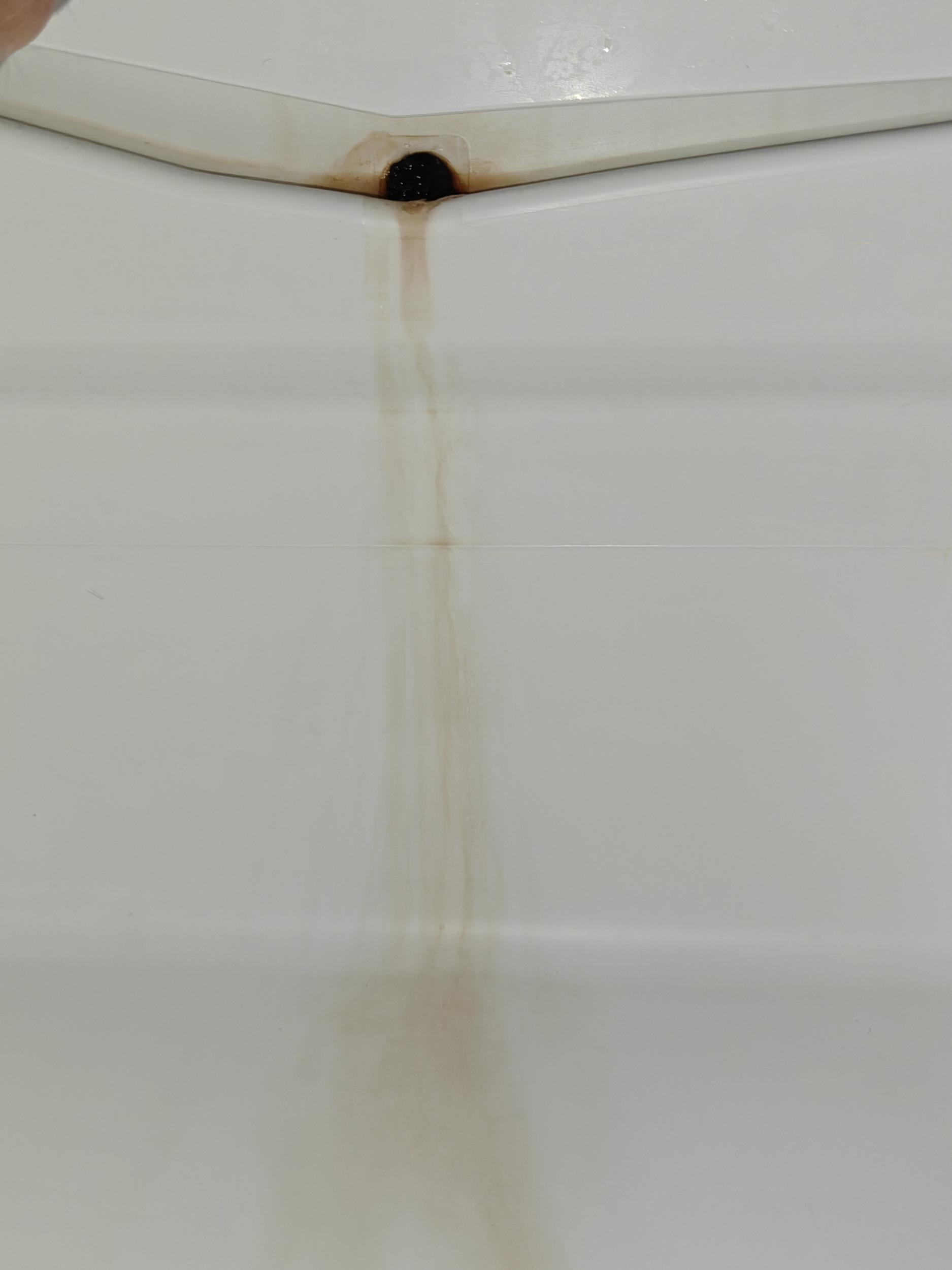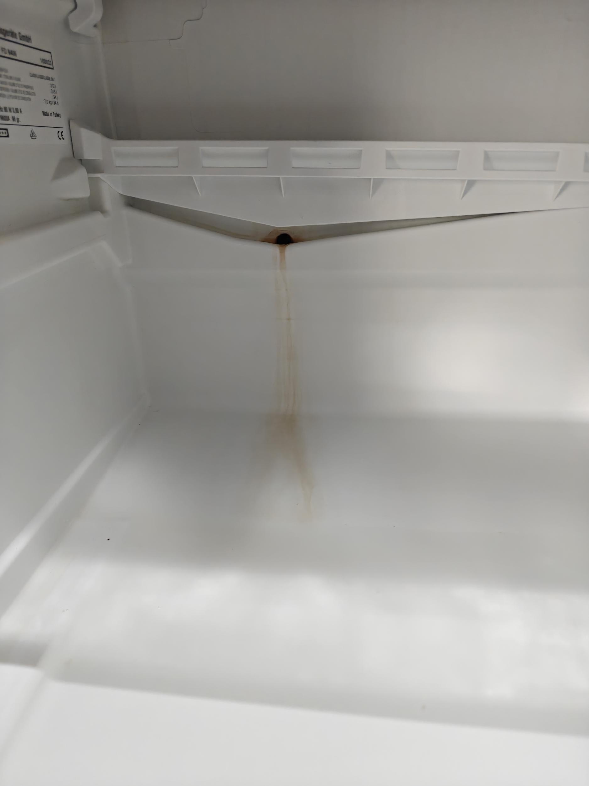Külmkapi tagapaneelist lekib must vedelik, mille tagajärjel koguneb põhja vesi.