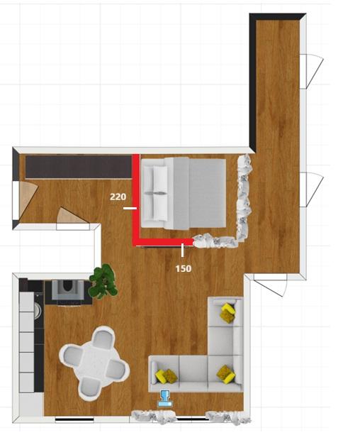 Teise seina laius: u. 150 cm (võib olla veidi pikem)