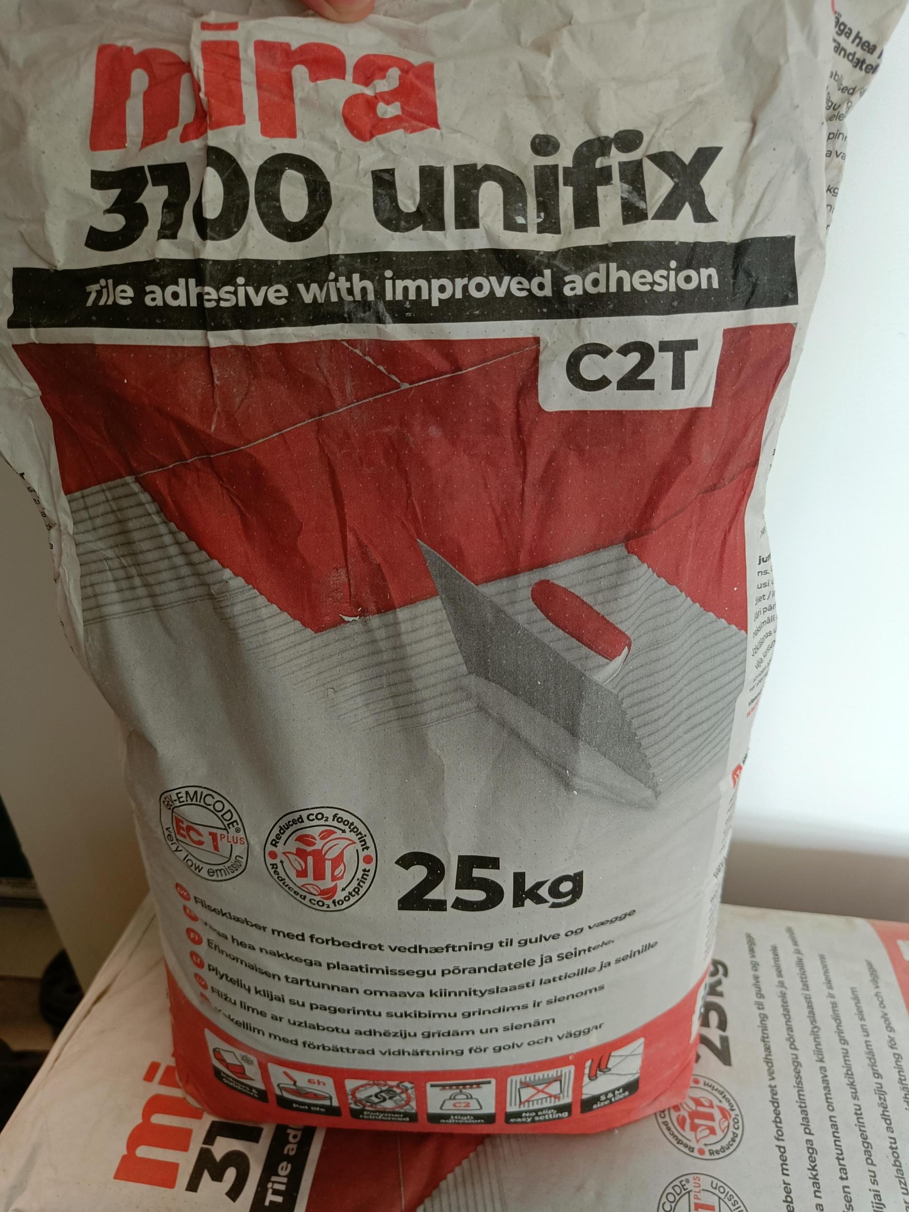 Kõik plaadid on samasugused ainult suurus erinev. Plaadid ja segu on olemas. Plaadiks valge kiviimitatsiooniga keraamiline Pamesa Cromat Blanco plaat. Segu Mira 3100 unifix C2T.