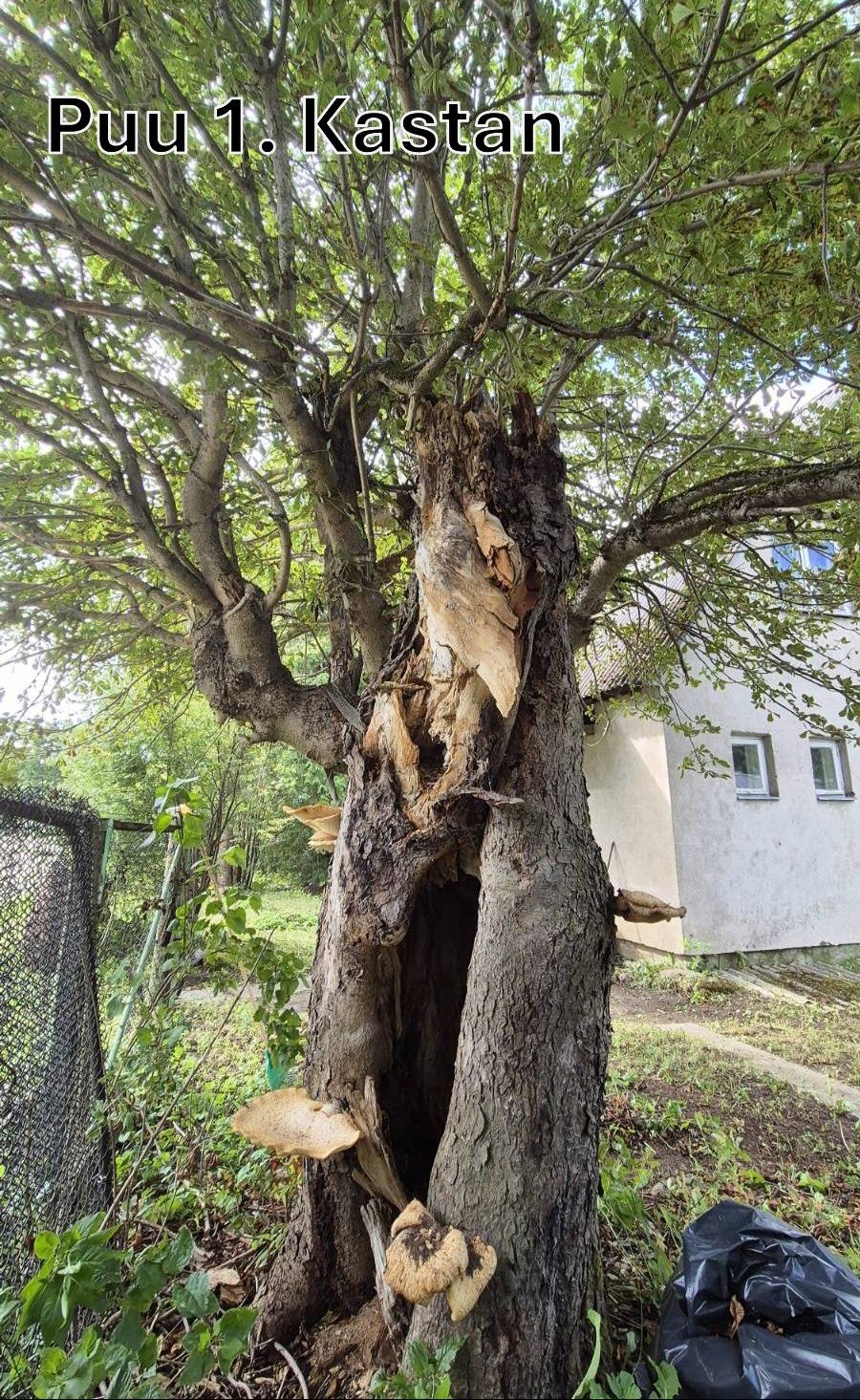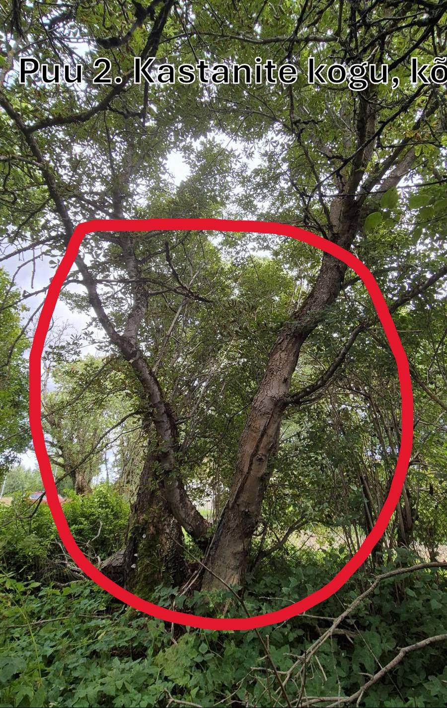 2. "Puu 2" pildil on murdunud kastan ja kaks risti kasvavat kastanit. Soov on neist kõigist lahti saada.