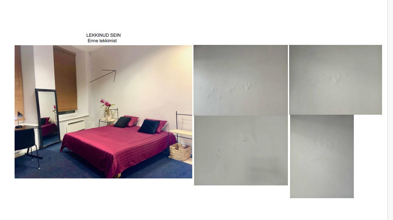 Värvida terve tuba (2x) uuesti kõik seinad, et ruum jääks ühtlane ja ühesugune nagu enne kahjustusi. Vaid 1 lekkinud sein uuesti soojutada koos kipsplaadiga . Lisaks eemaldada ja tagasi paigaldada 2 elektrilist seinaradiaatorid ja 3 rulood mille pikkus 1,6 m kumbki.