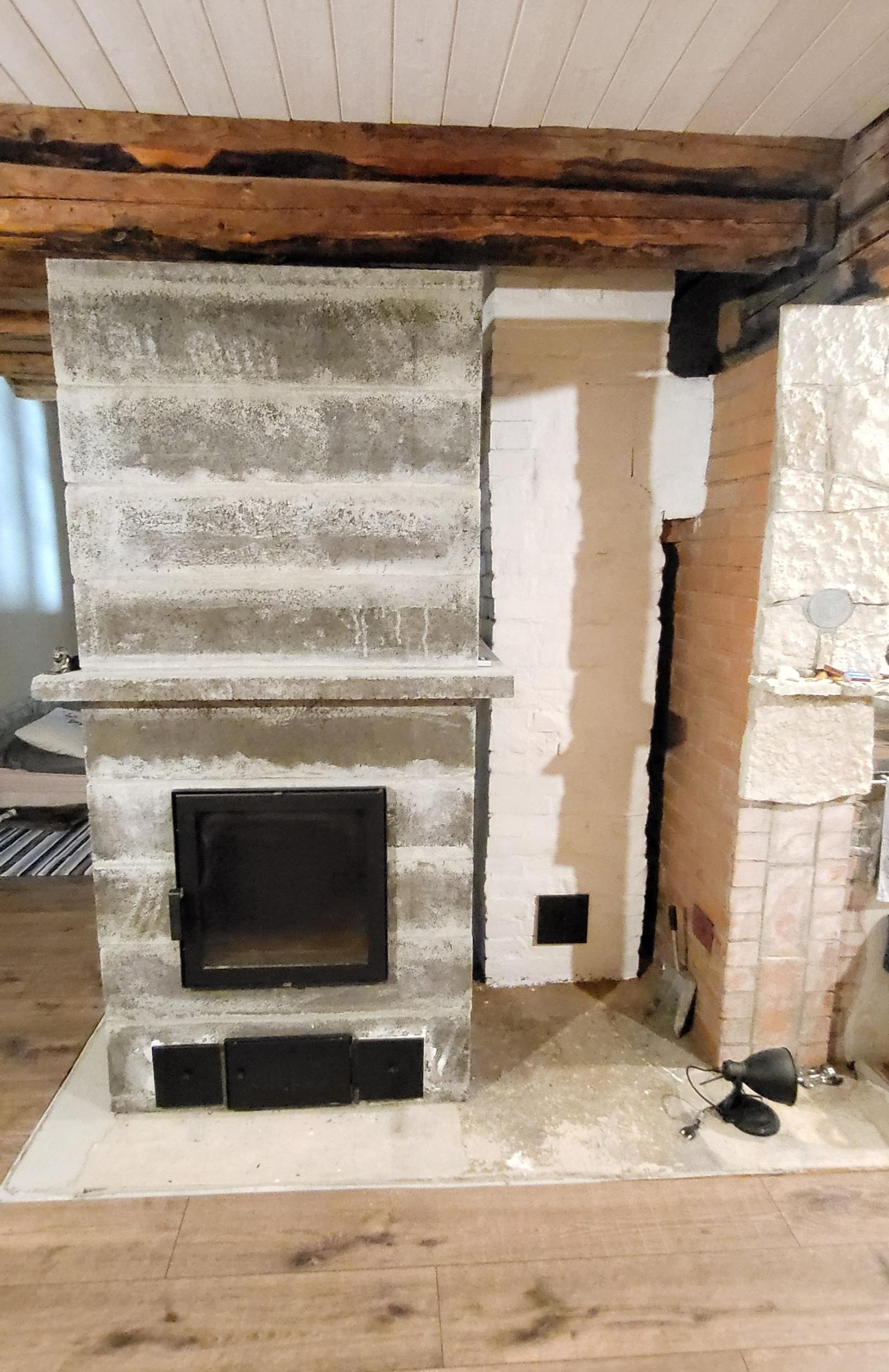Ahju kõrval olevale korstnale samuti läheb peale antiikkrohv.