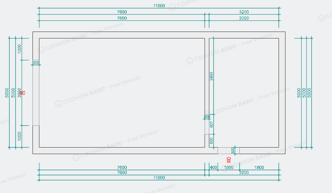 I korrus – H3000 mm +(puittaladega vahelagi) Esimese korruse planeering: joonisel märgitud suurem osa on garaaž; väiksemasse ossa tuleb rajada trepp teisele korrusele ja pesuruum
