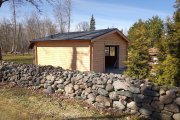 Kuur ja kuuri katuse materjal tarnitud objektile paigalduskoha kõrvale.