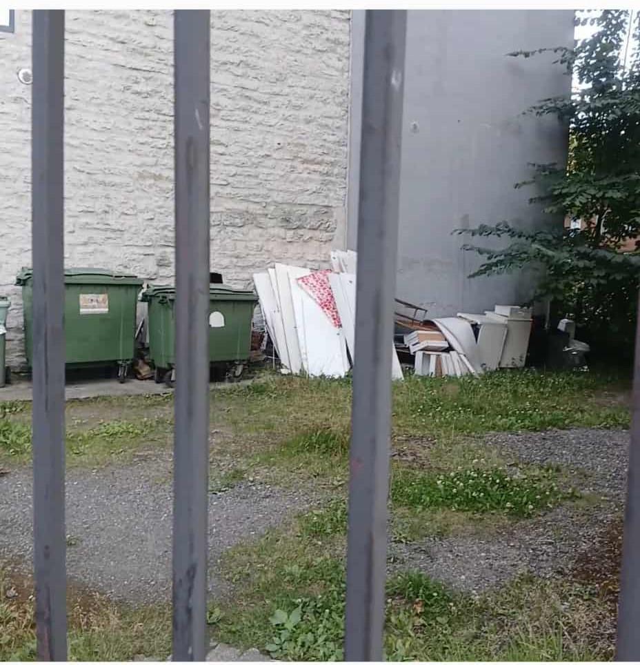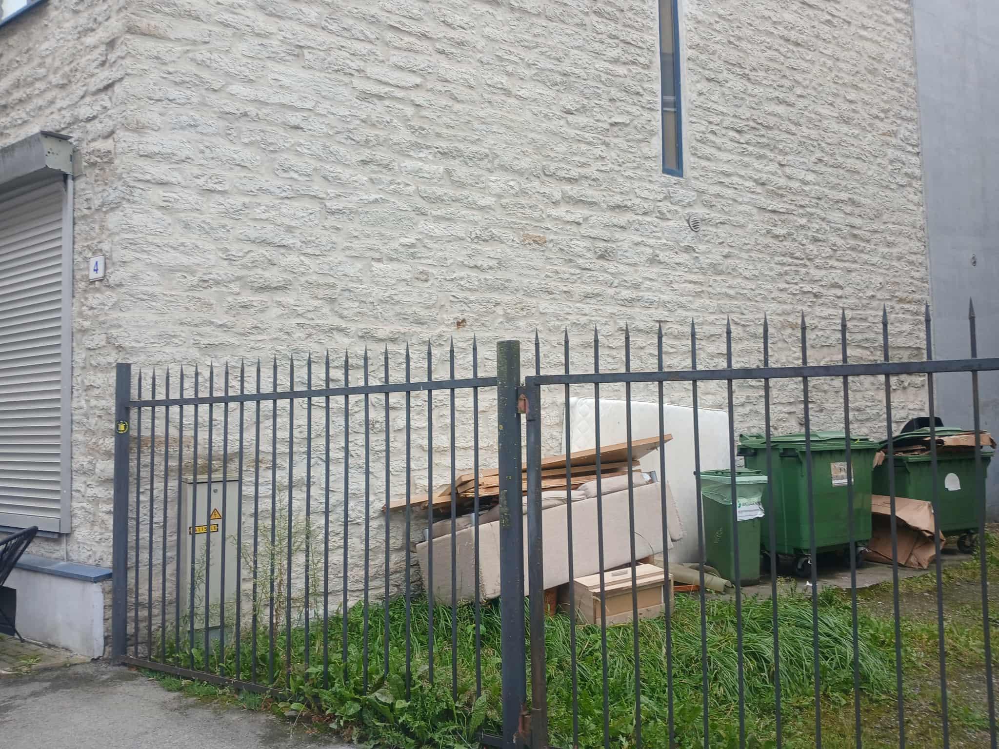 Sinine osa majal (krohvitud osa) on rikutud ja auke muljumisi täis, kuna aastaid naabrid seina vastu suurt prügi ladustanud.