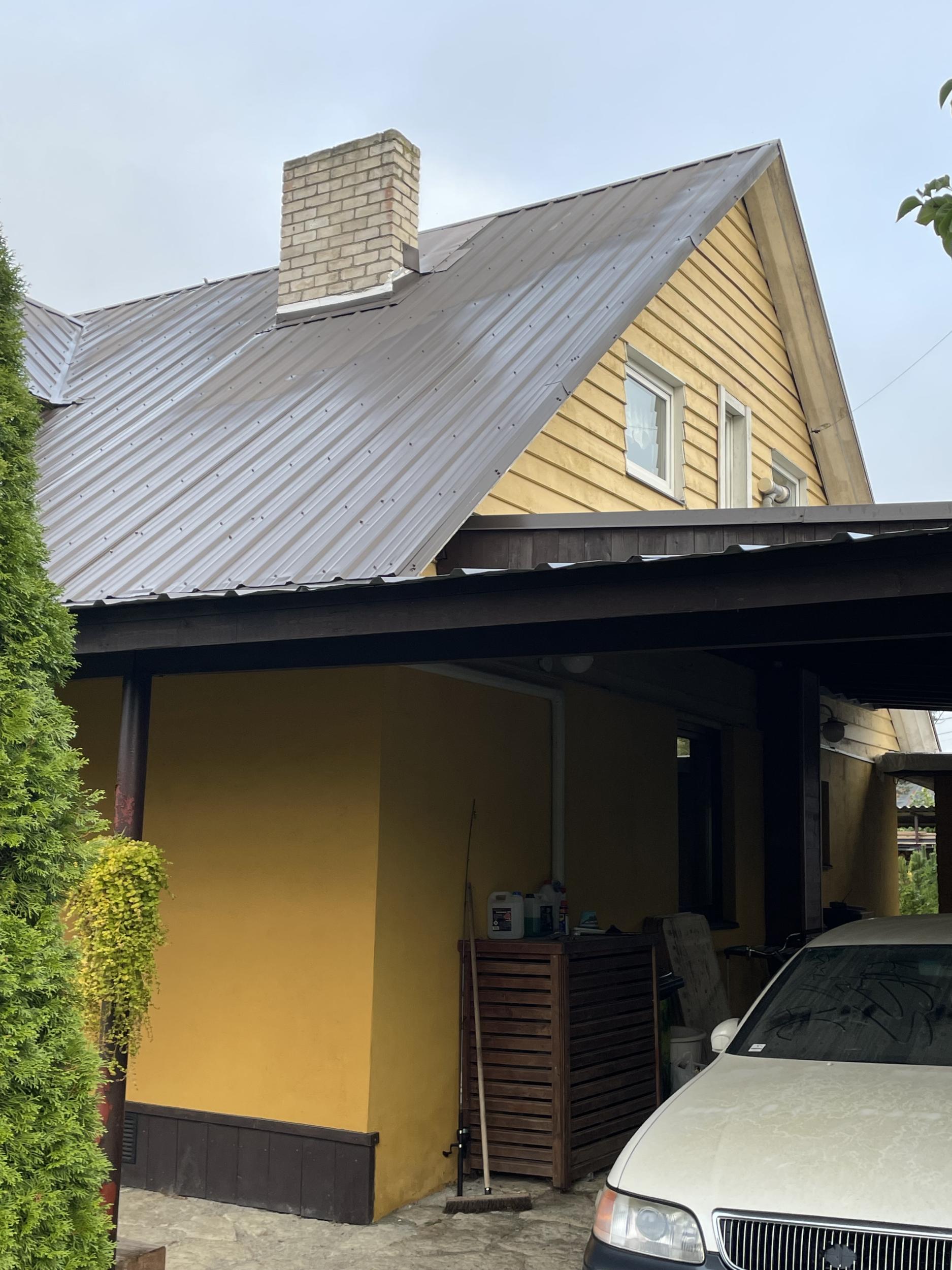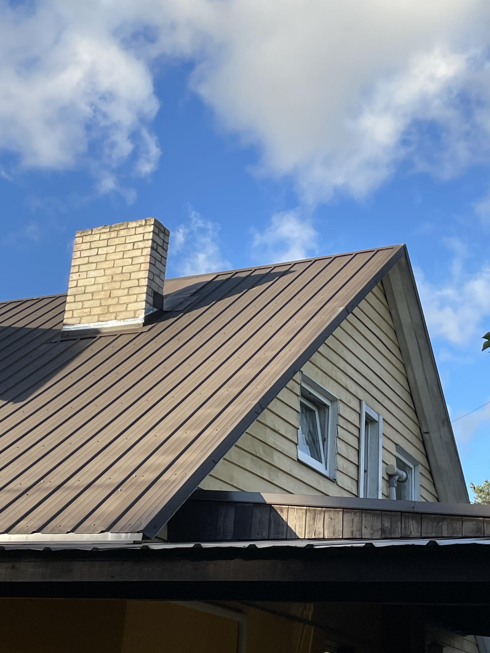 Katus laseb korstna juurest vihma läbi. Tegemist plekk-viilkatusega.