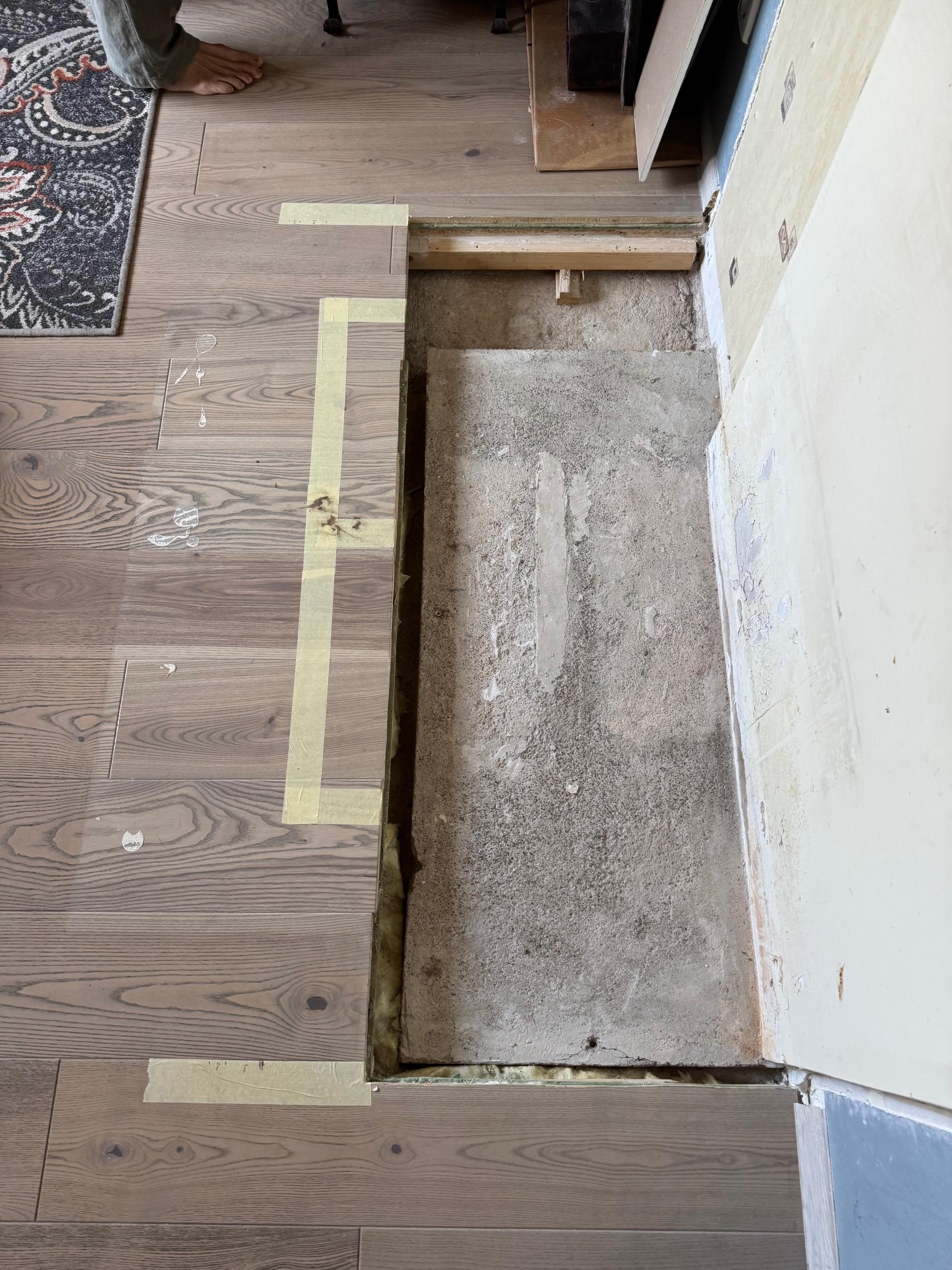 Töötsoonis on vaja eemaldada ka natuke aluspõrandat. Betoon valatakse kas eemaldatavast või püsivast kiudtsementplaadist (fiber cement board) valmistatud vormi, mis võib jääda osaks lõplikust konstruktsioonist. Ahju paigaldus on kavandatud 6-7. oktoobriks 2025. Ehitajal võib olla ka muid ideid, kuidas seda alust teha.