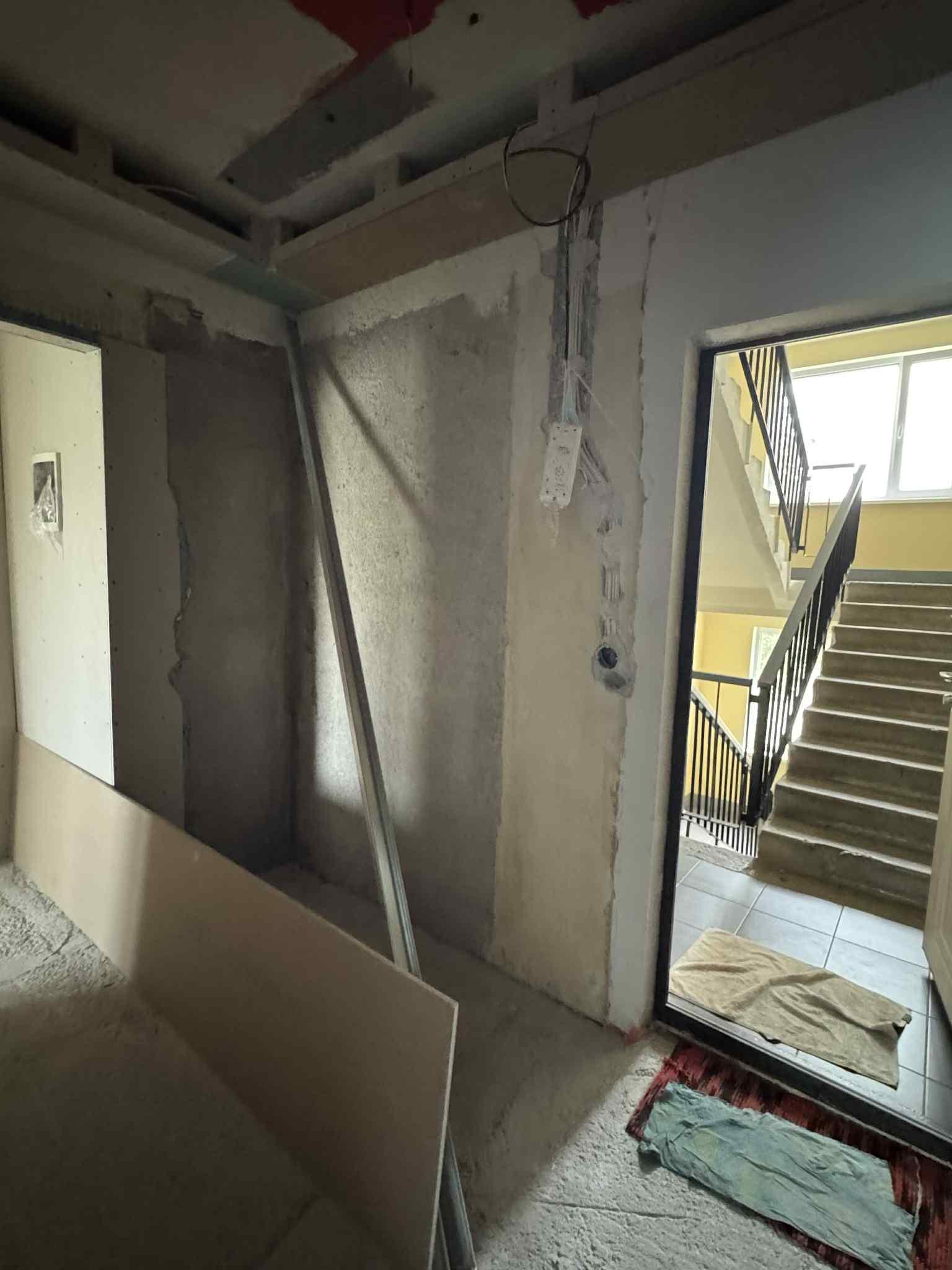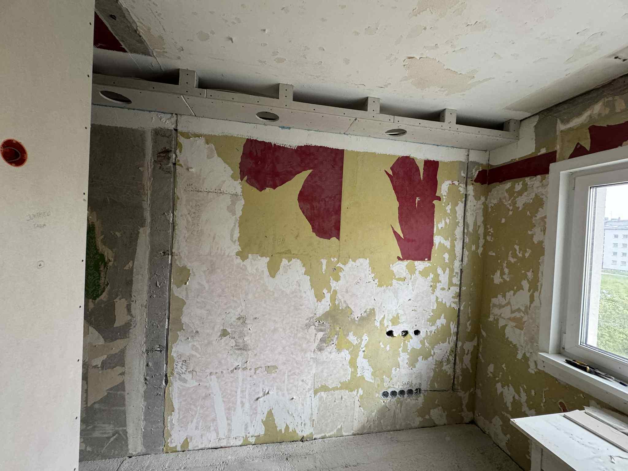 2-toaline korter kolmandal korrusel. Viimistleda(ja krohvida, vajadusel) on vaja betoonseinad ja laed. Seinapindala 60m2 ja lae pinda 20m2. Elektritööd lõpetatud. Seinale läheb helehall värv. Lae ääres kipsist sirm, mis jääks valge-laius 25cm, pikkus koridorist köögini.
