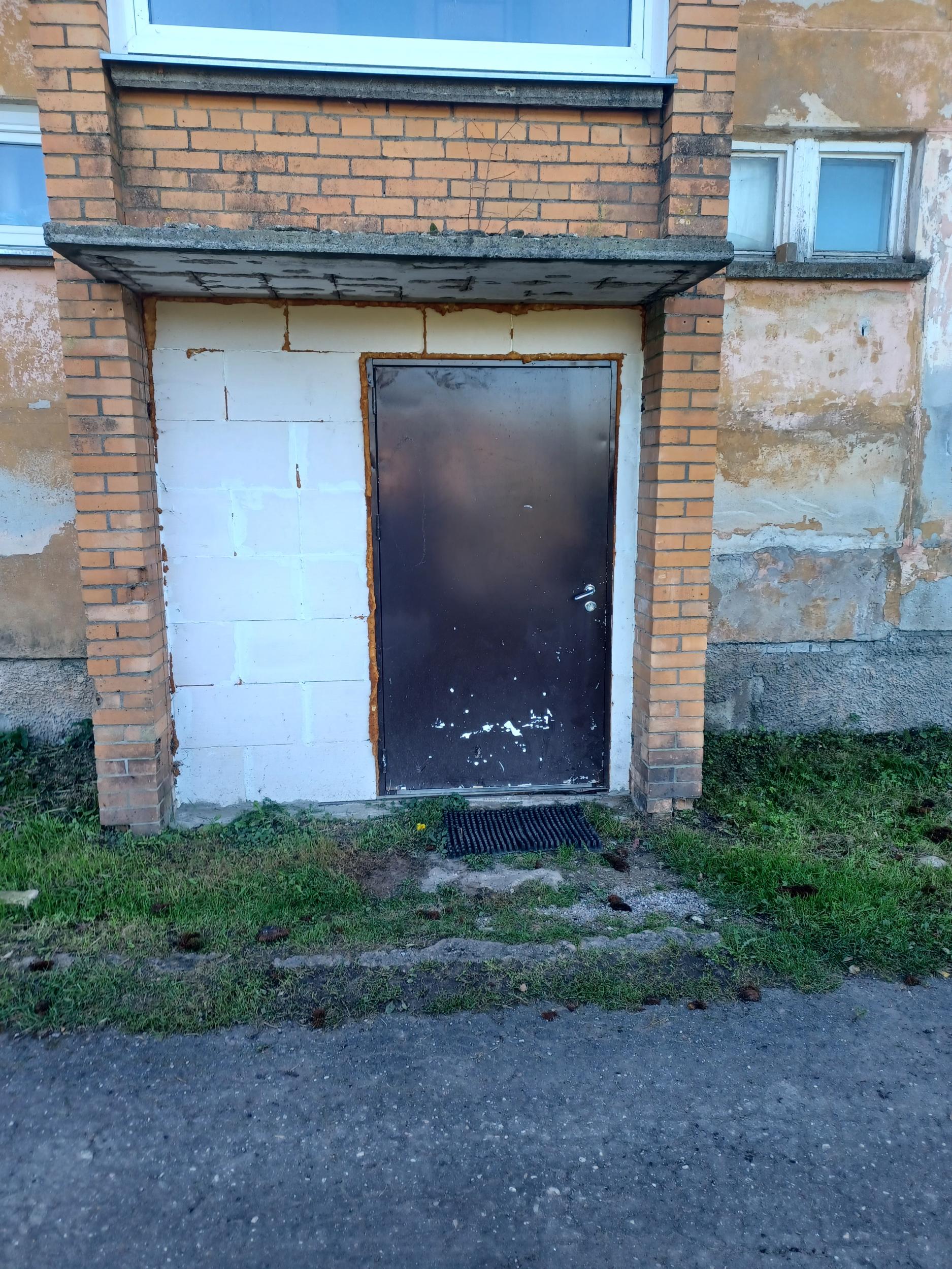 Trepikoja ava laius 222cm ja kõrgus 236cm, soov ava teha väiksemaks, uus uks. Ukse kohale teha kolmnurkne katus. Ukse ette valada betoonist aste.