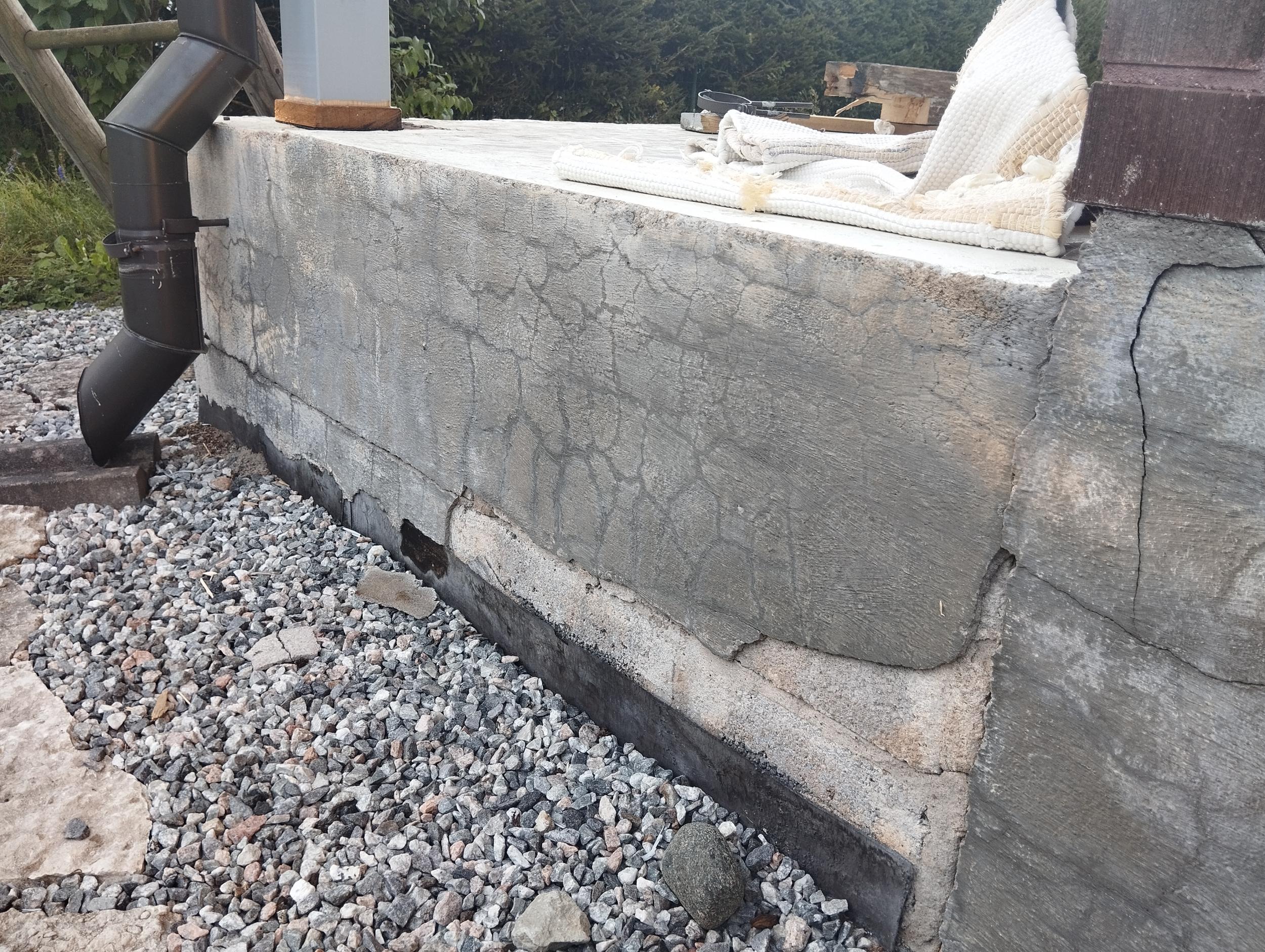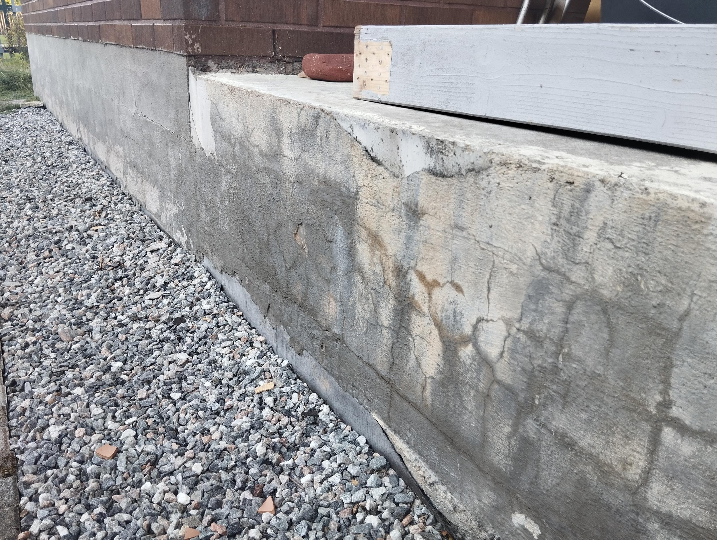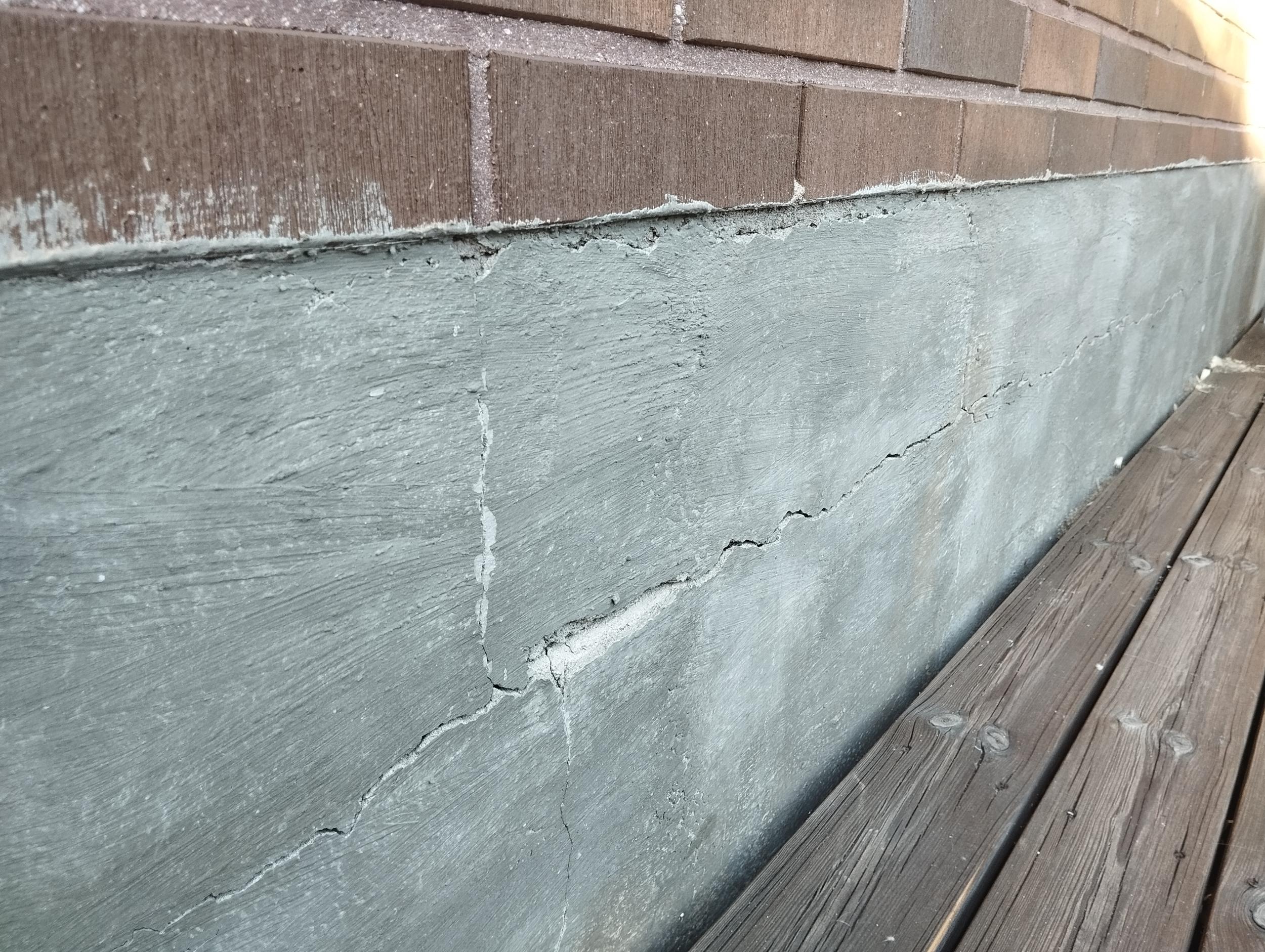 Maja on L-kujuline, vundamendil aknaid ei ole. Osa maja külgi vundamendil on paremas seisus, osa rohkem pragunenud krohviga, töö tehtud aastal 2002. Pragunenud on vuugikohad peamiselt, suuremaid krohvitükke maha tulnud paaris kohas.