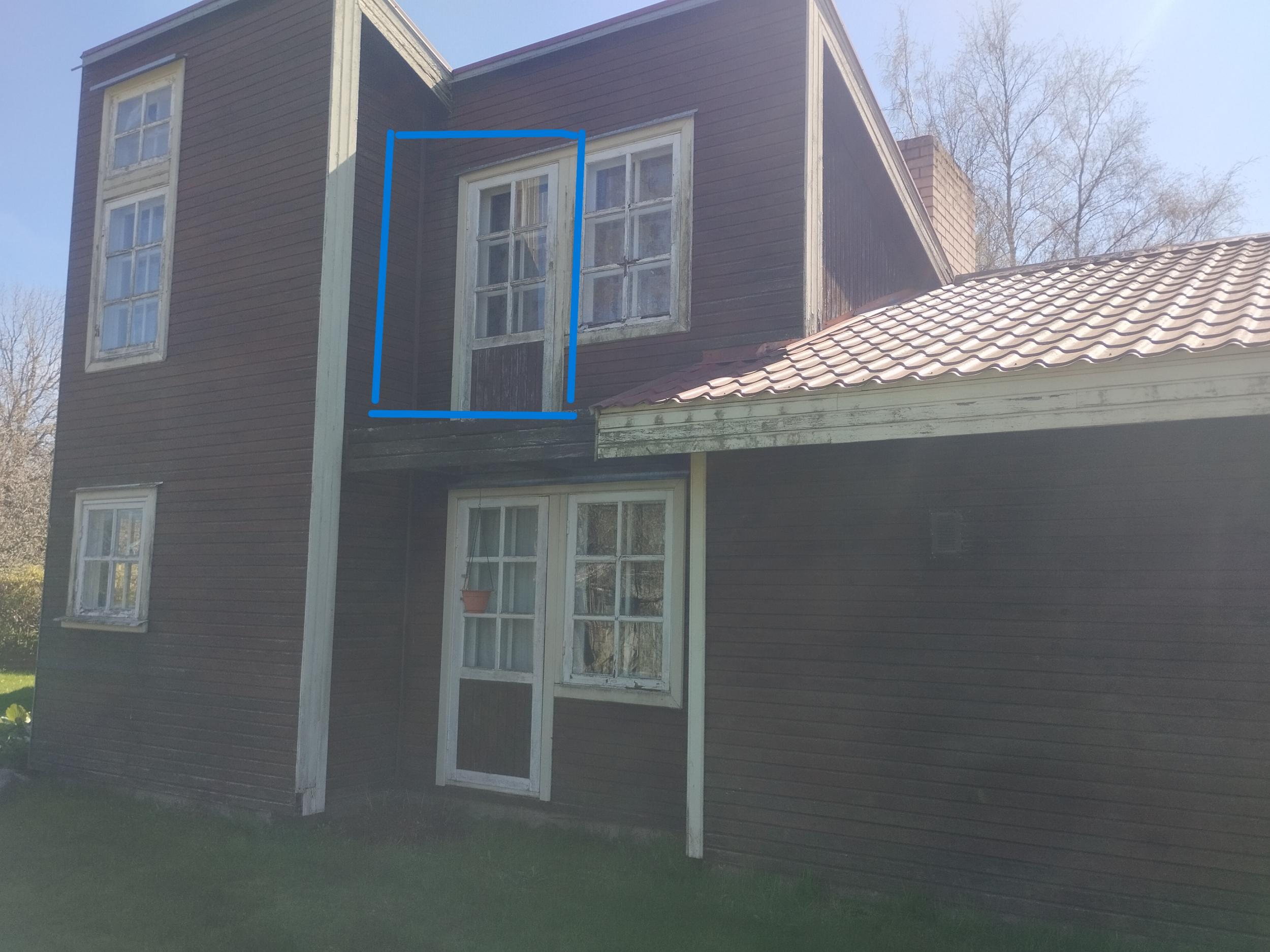1. Maja teisel korrusel asub rõduks, mida ei ole kunagi kasutatud (rõdu väljaehitamata). Soov on uks asendada aknaga. Teostatav töö on ukse alumise osa kinniehitamine. Vt lisatud pilt.