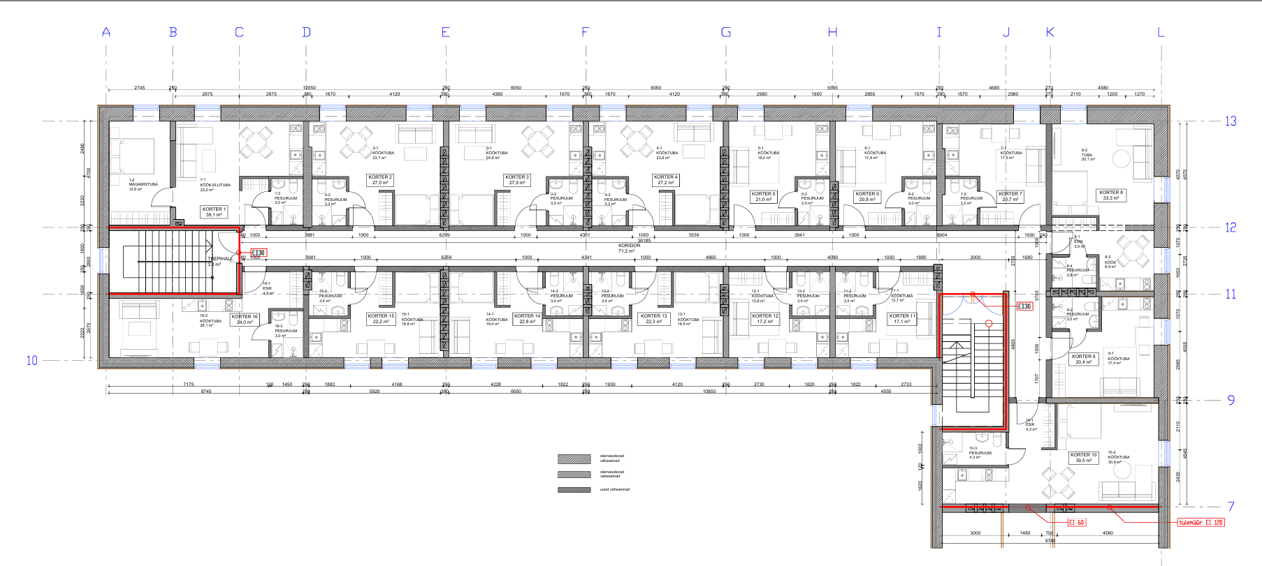 Vaja ehitada koridori seinad kahekordsest kipsist, et tagada tuleohutus ja helinõuded.