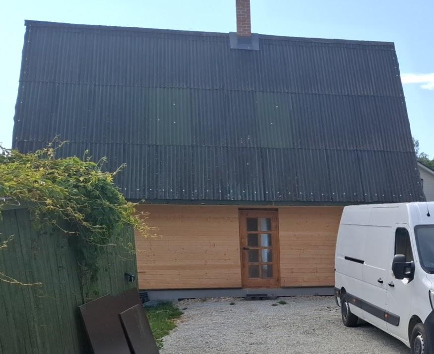 Katus 125m2 on praegu vana Onduline ja selle all mitu kihti tõrvapappi täislaudisel. Eemaldada ja utiliseerida tuleb vana katusekate ja tõrvapapp. Vanad sarikad ja täislaudis jääb alles, nendele ehitada uus katus. Sarikate vahe on ebaühtlane, 70-100cm. Kaheksa Velux GGU / GPU MK10 / MK08 katuseakna jaoks tuleb ehitada raamid.