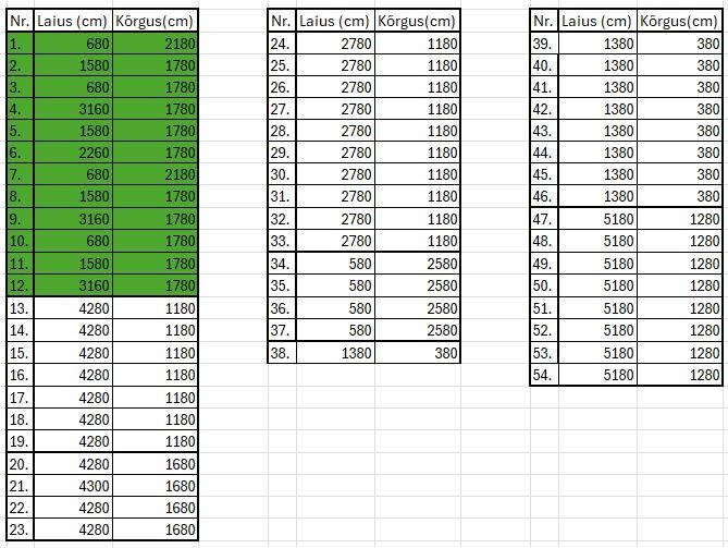| Ehitusmaterjalid: | Töö tegija poolt |