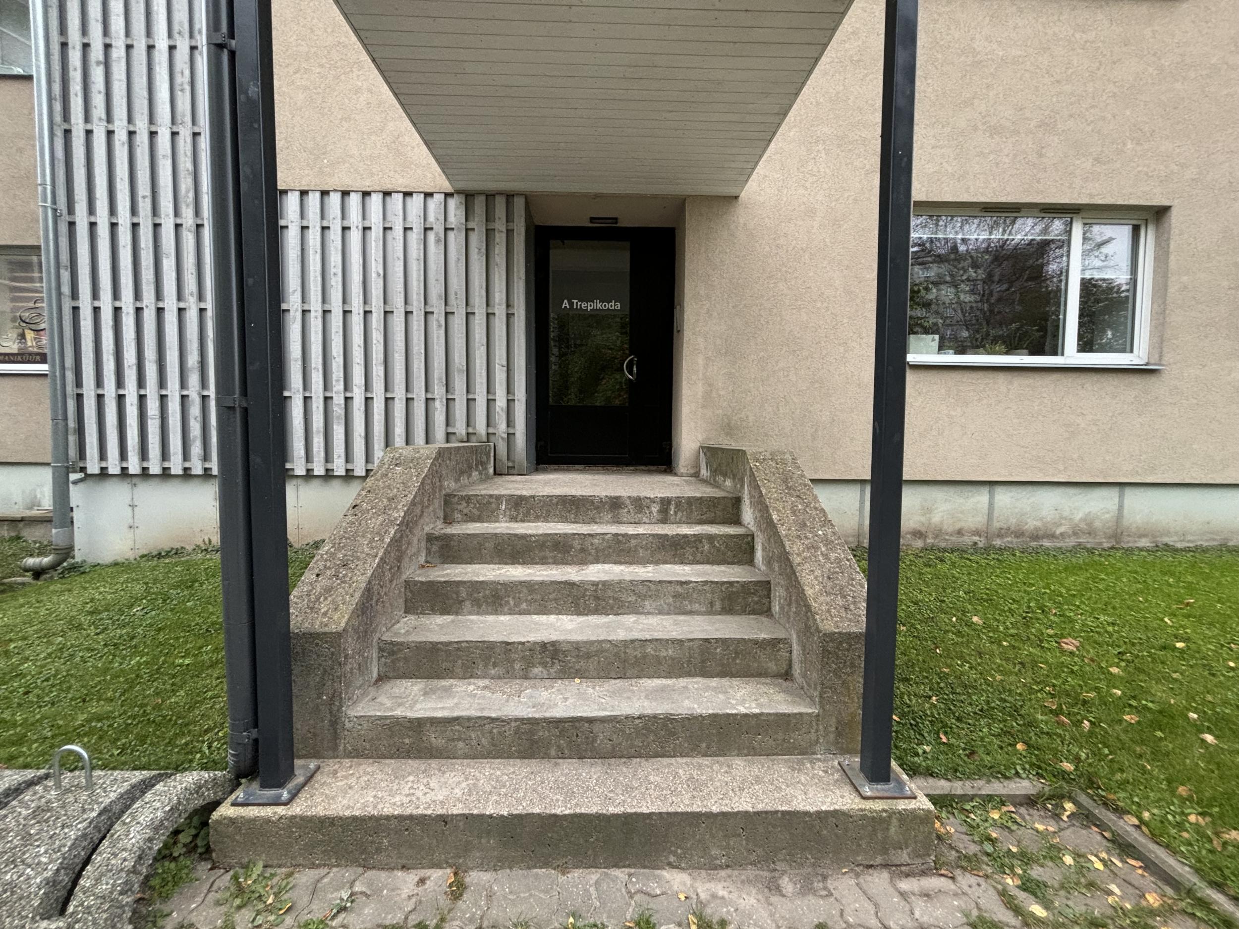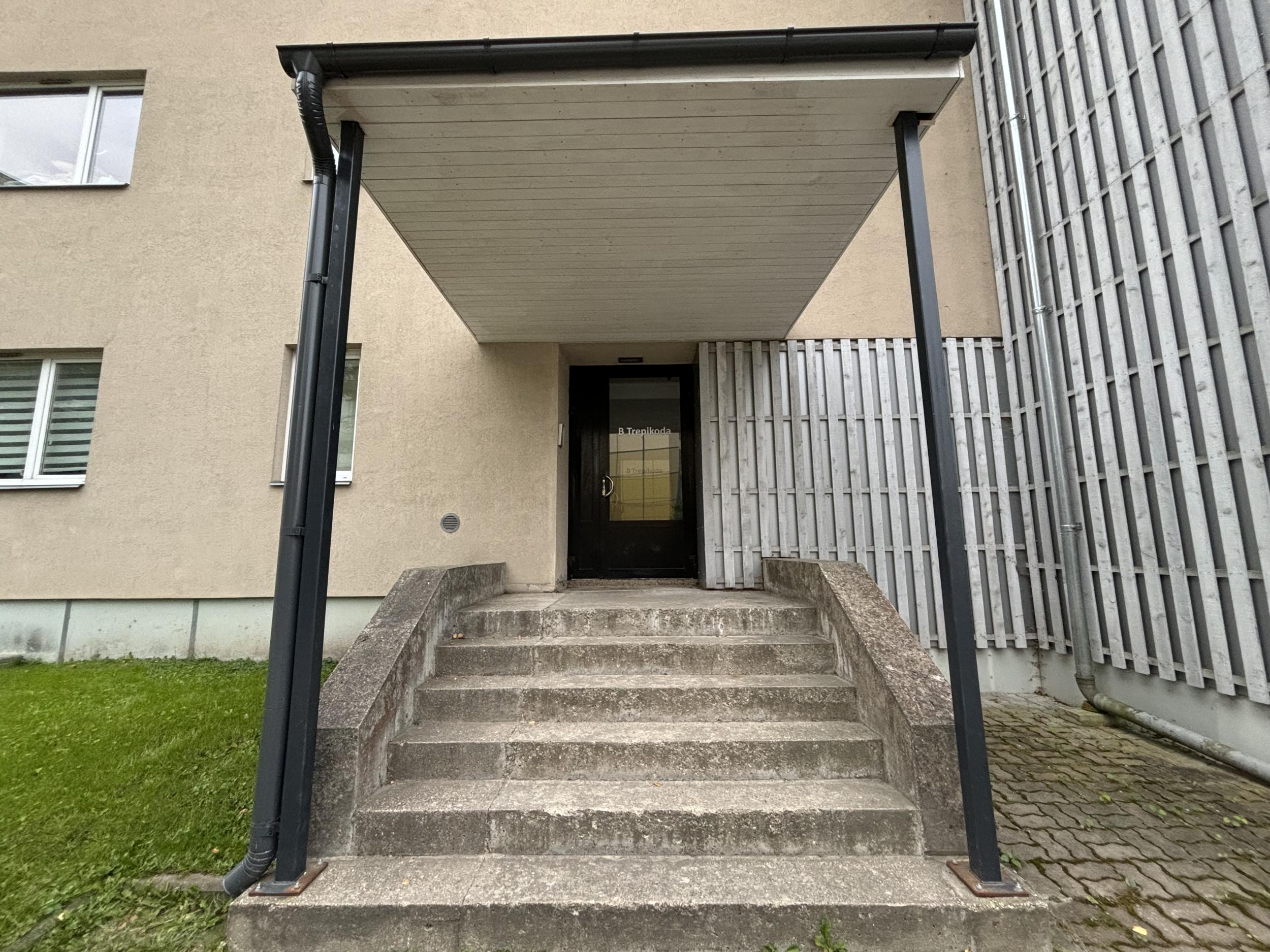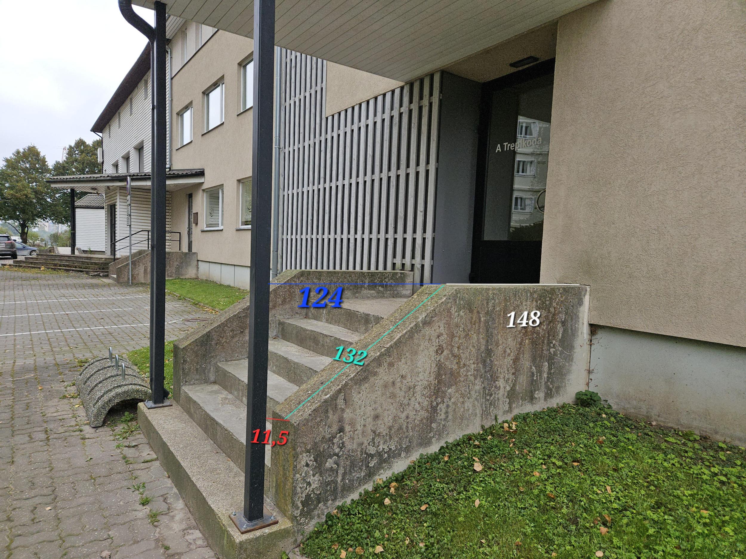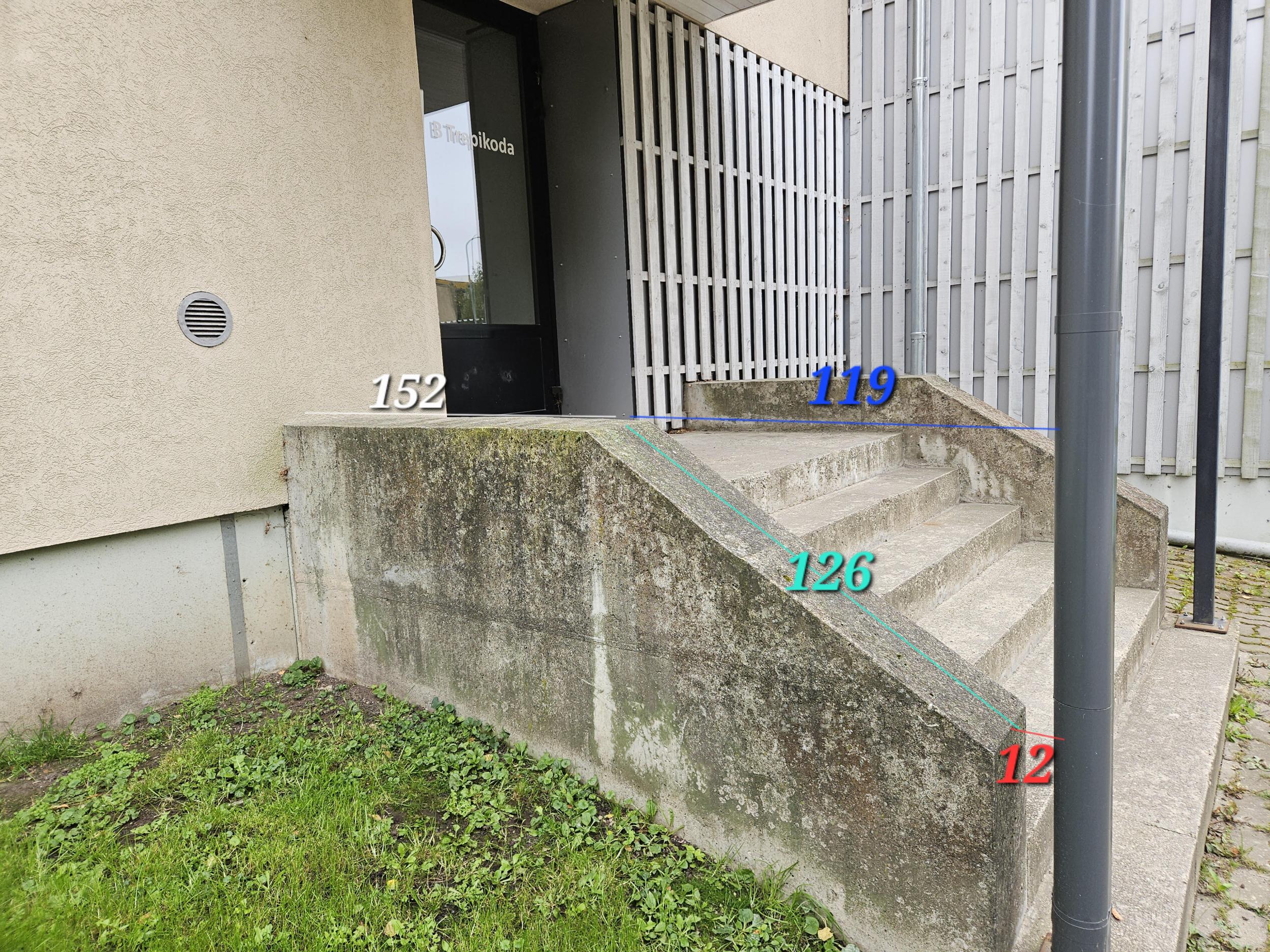 Korteriühistu tellib käsipuude paigalduse kahele trepile. Käsipuud tulevad trepi mõlemile poole. Trepid on piltidel näha A ja B trepikoja ees.