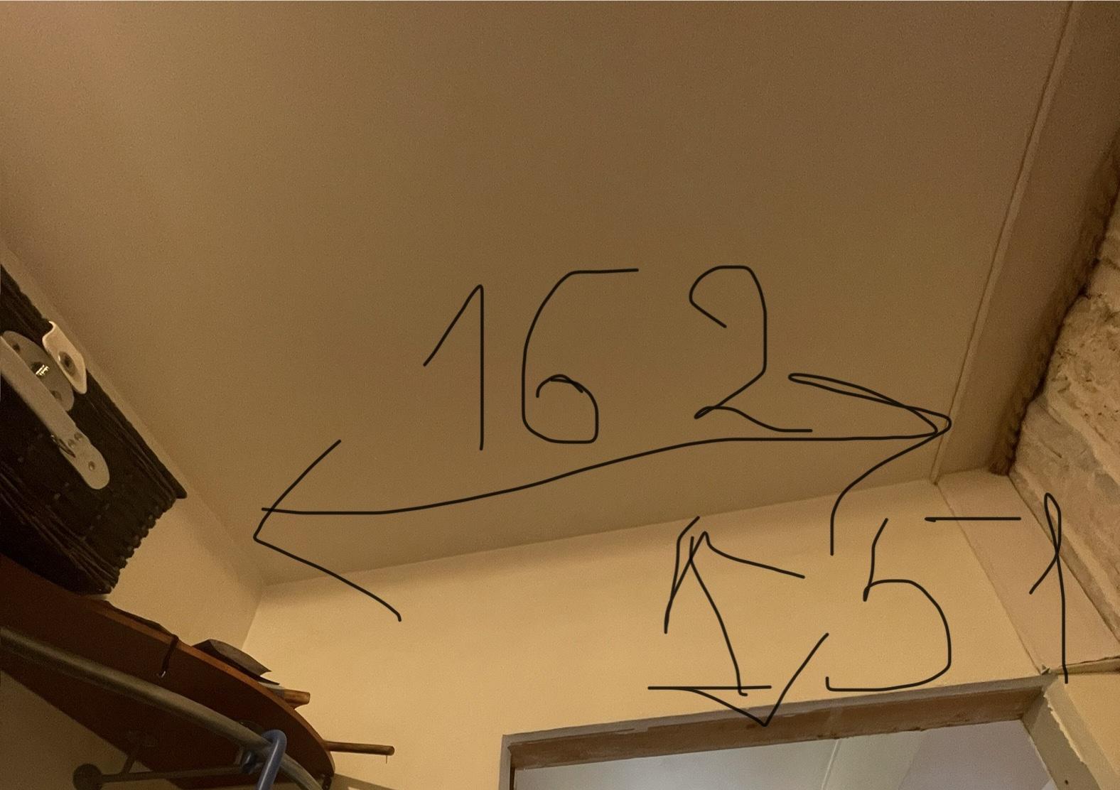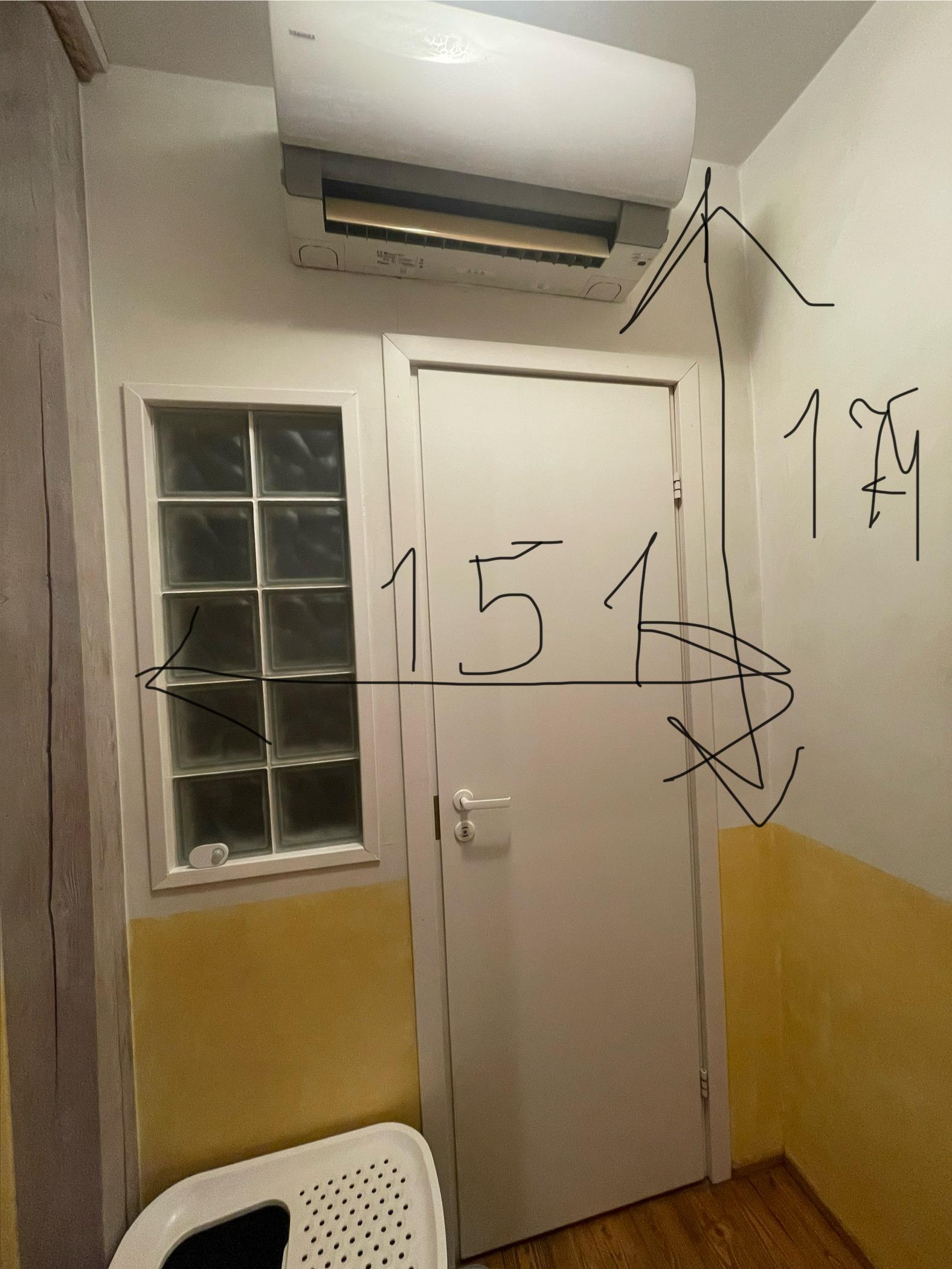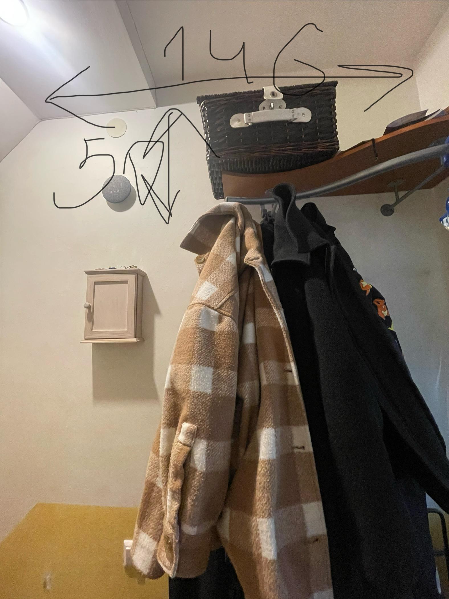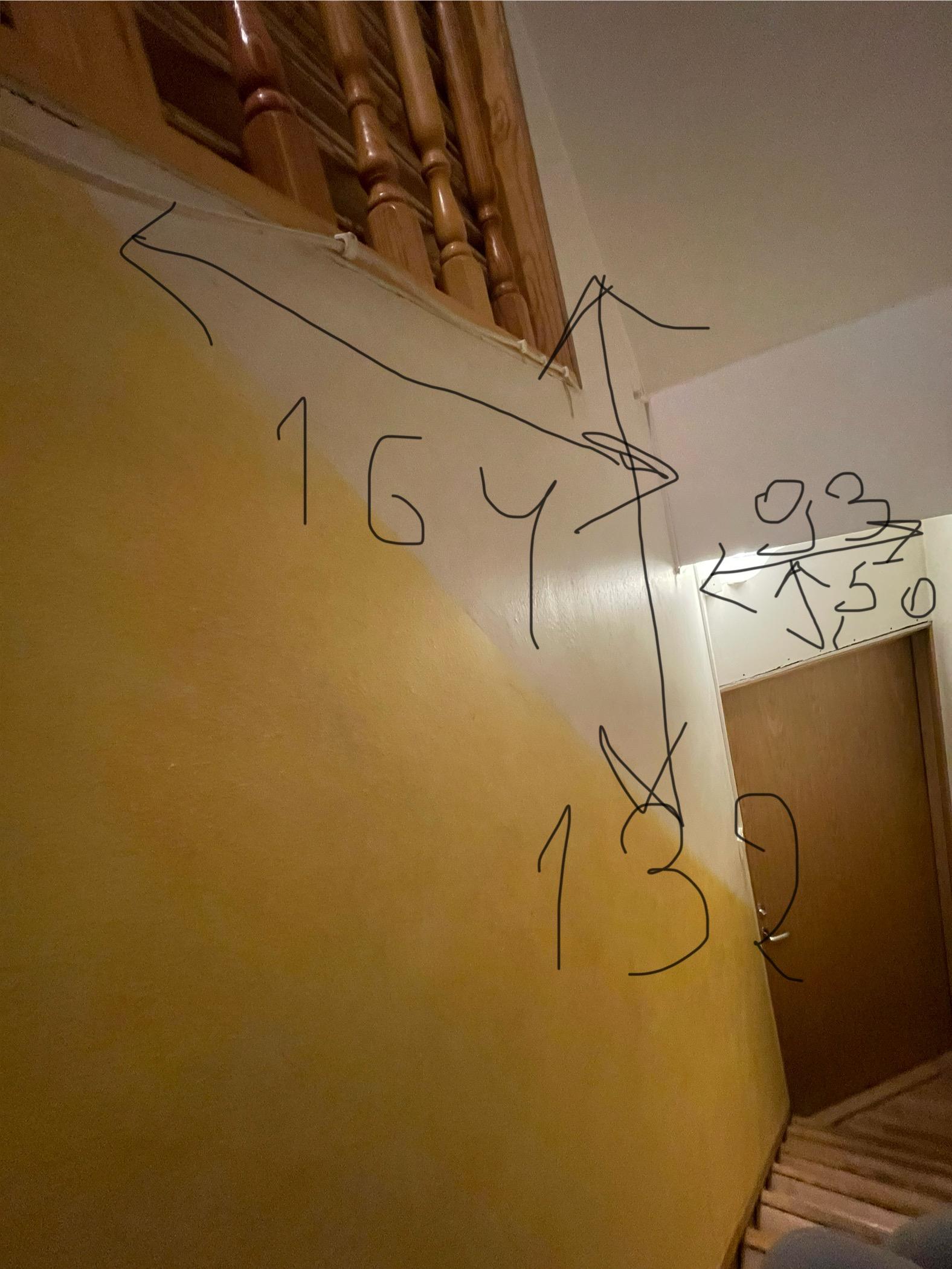Tapeet mustriline, läheb ainul valgele alale (kollasele tuleb pärast laudis), riidenagi kohal tuleb pikem laudis, nii et ainult 50cm tapeeti (nagu pildil märkitud)