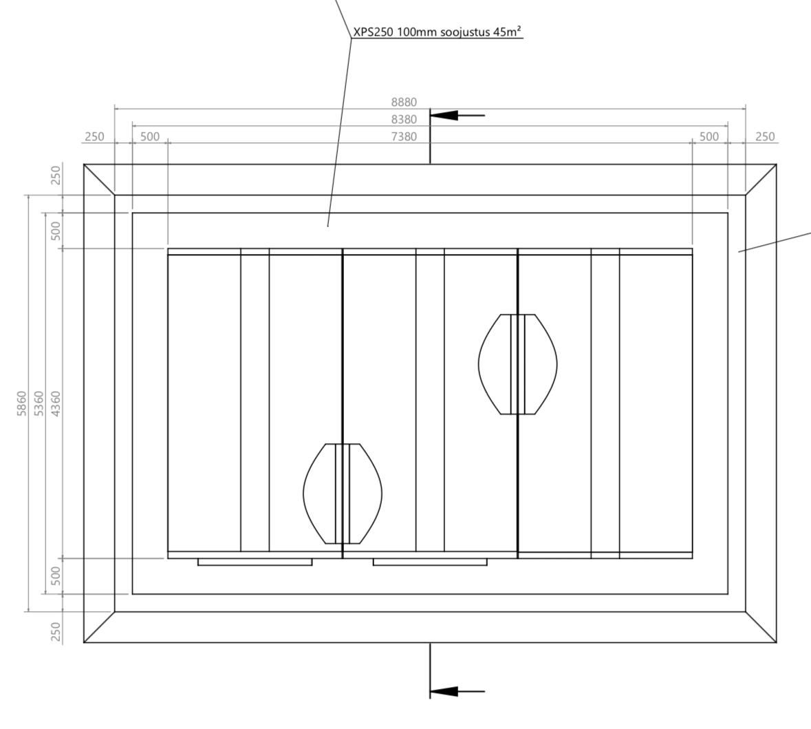 · Põhi tuleb täita minimaalselt 200 mm liiva- või killustiku padjaga.