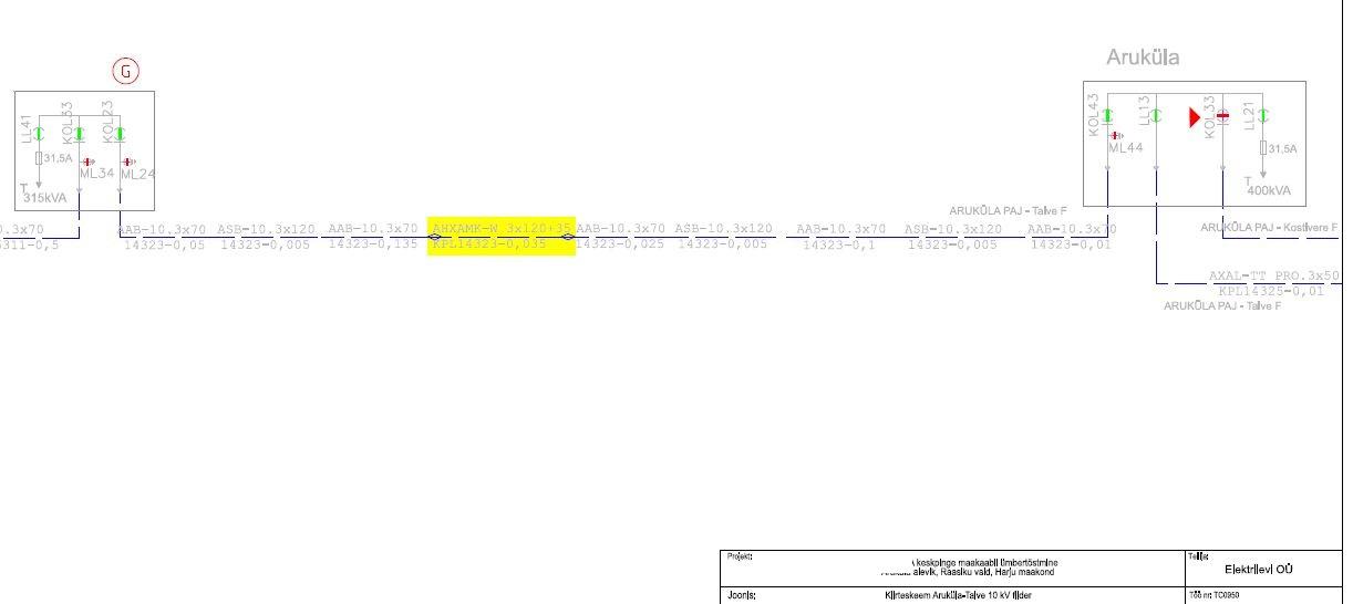 Elektrilevile kuuluva keskpinge maakaabli ümberpaigutamine tellija kinnistu piires. Olemasolev õlikaabel läbib krunti. See tuleb mõlemast otsast siirdemuhvide abil üle viia uuele kaablile. Olemasolev kaabel on väidetavalt töös ja pingestatud, st tuleb korraldada Elektrilevi poolne väljalülitamine tööde (ühenduste teostamise) ajaks.