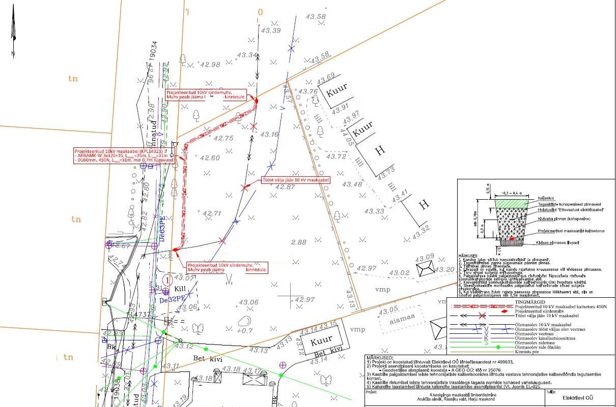 Mõistagi on olemas korrektne projektdokumentatsioon dwg ja pdf formaatides. Hetkel on siia lisatud sellised tõmmised, kus (hange.ee reeglite kohaselt) on eemaldatud isiku- ja aadressiandmed. Projektdokumentatsioon on Elektrilevi poolt heaks kiidetud ja EPP keskkonnas olemas. Samuti on olemas kehtiv geoalus. Ühtki täiendavat kooskõlastust ei tohiks vaja olla, kuna kogu tegevus toimub tellija kinnistul ja ei kattu muude kaitsevöönditega.
