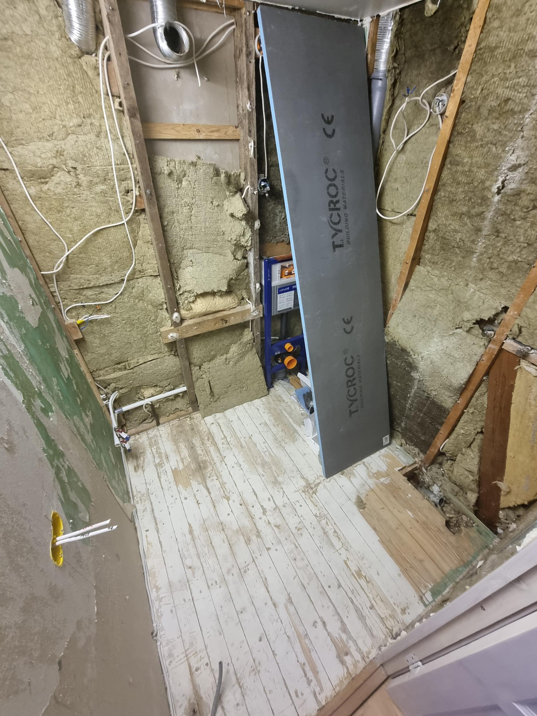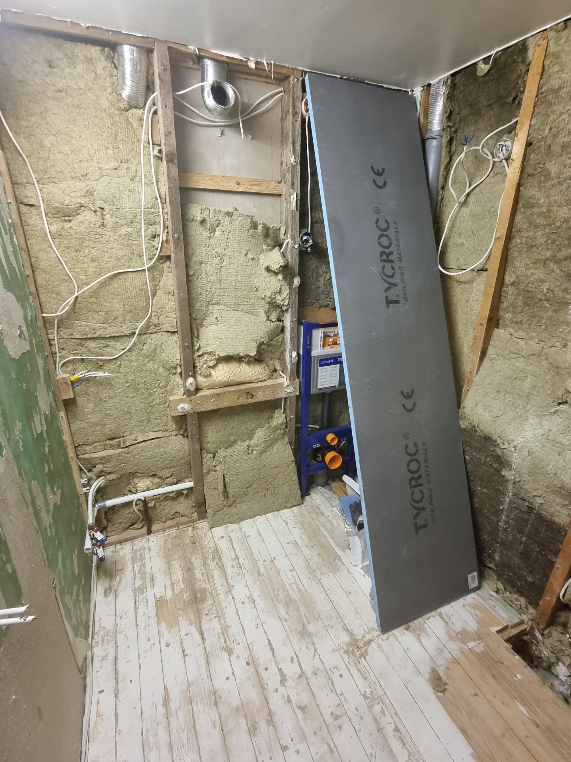 Osaliselt kipsi-, osaliselt tycroci paigaldus, seinte niiskuskindlaks tegemine. (Hüdroisolatsioon)