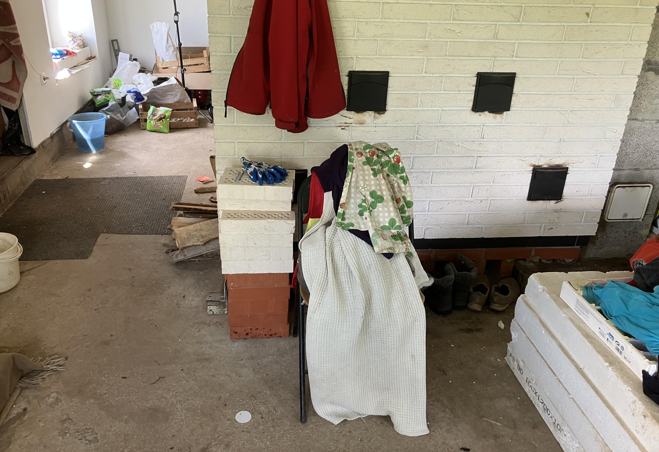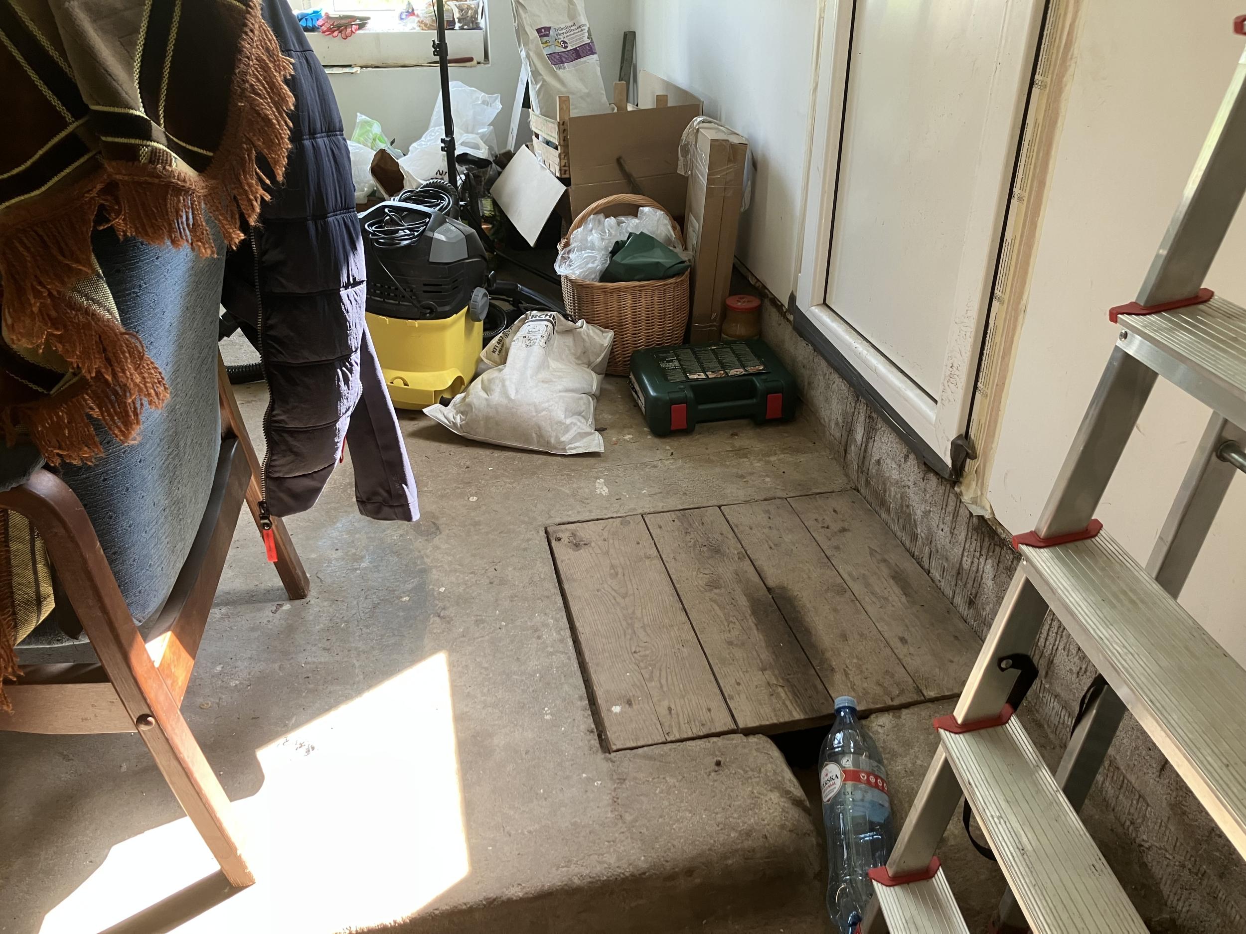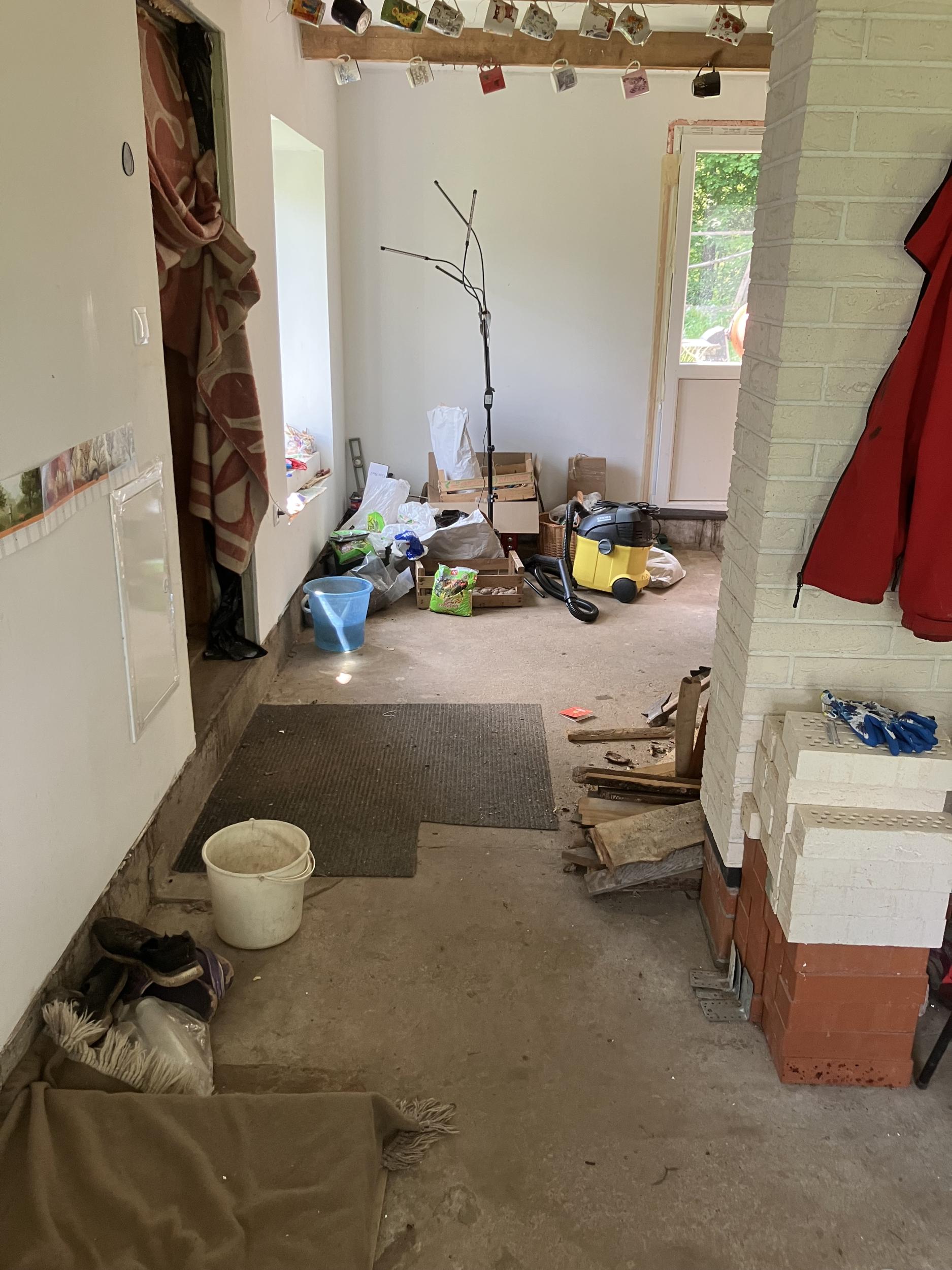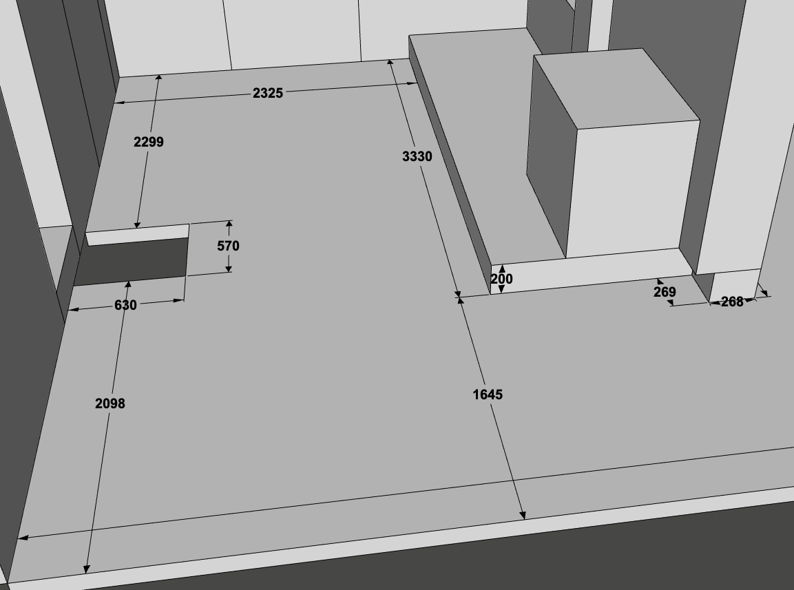 Põrandat ehitades tuleb silmas pidada, et betoonpõrandas asetsevast august ülalpool (vaadates joonist "Vaade-1") on betoonpõrand kerge kaldega seinast augu poole, mida on näha piltidel 8154, 8155 ja 8156. Ülejäänud toa põrand on samatasandiline.