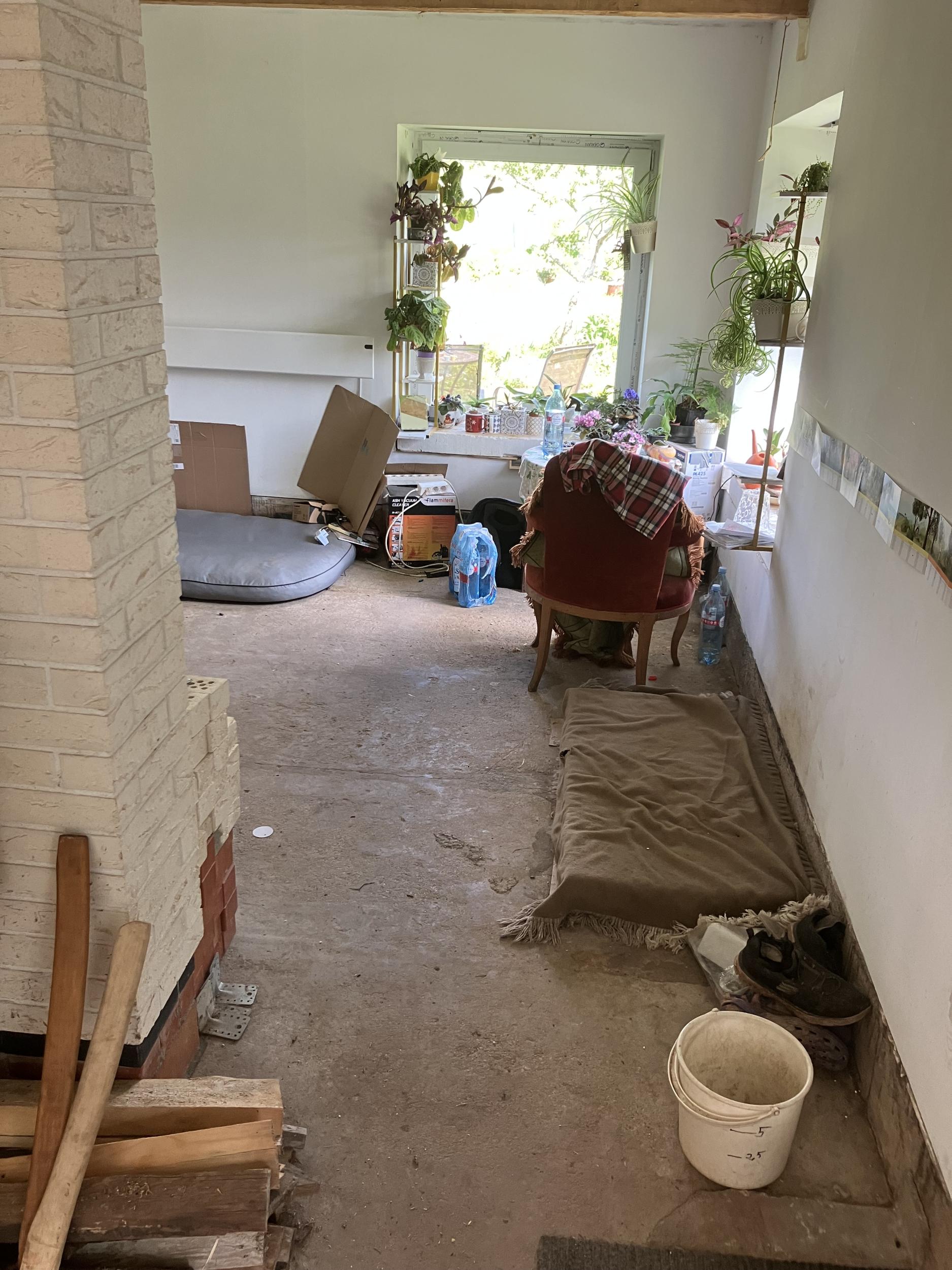 Tööks on 30a vanusele betoonpõrandale ehitada laiast (18-20cm) kuuse- või männilauast põrand. Laudpõrand peab asetsema kipsplaadi alumise ääre tasandil, st 20cm betoonpõrandast kõrgemal - betooni ja põranda vaheline osa tuleb villaga soojustada. Põrandalauad peavad asetsema paralleelselt toa lühema küljega (5m külg).