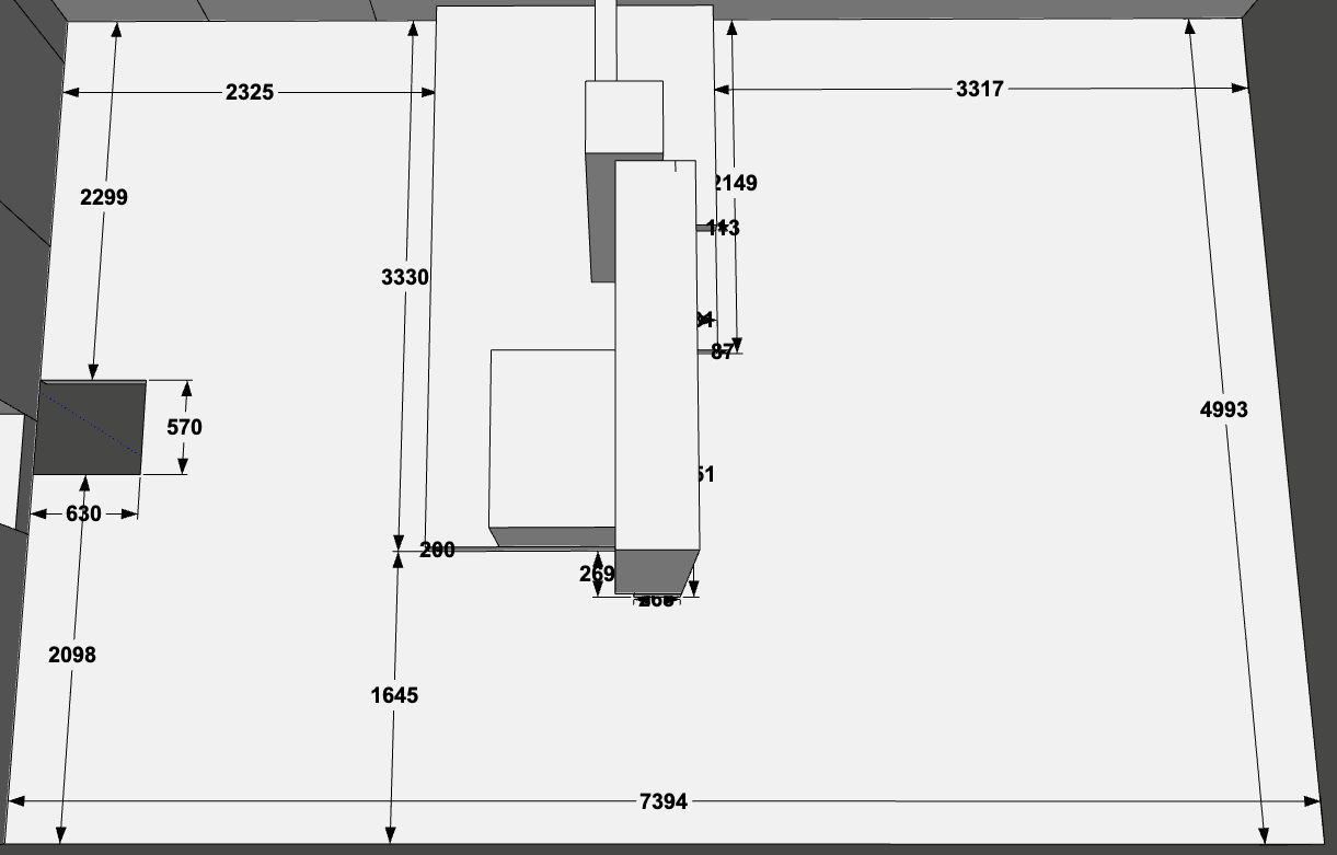 Joonisel "Vaade-1" on vasakul poolel näha 63x57cm auku betoonpõrandas, millele ligipääs tuleb säilitada avatava luugi abil.