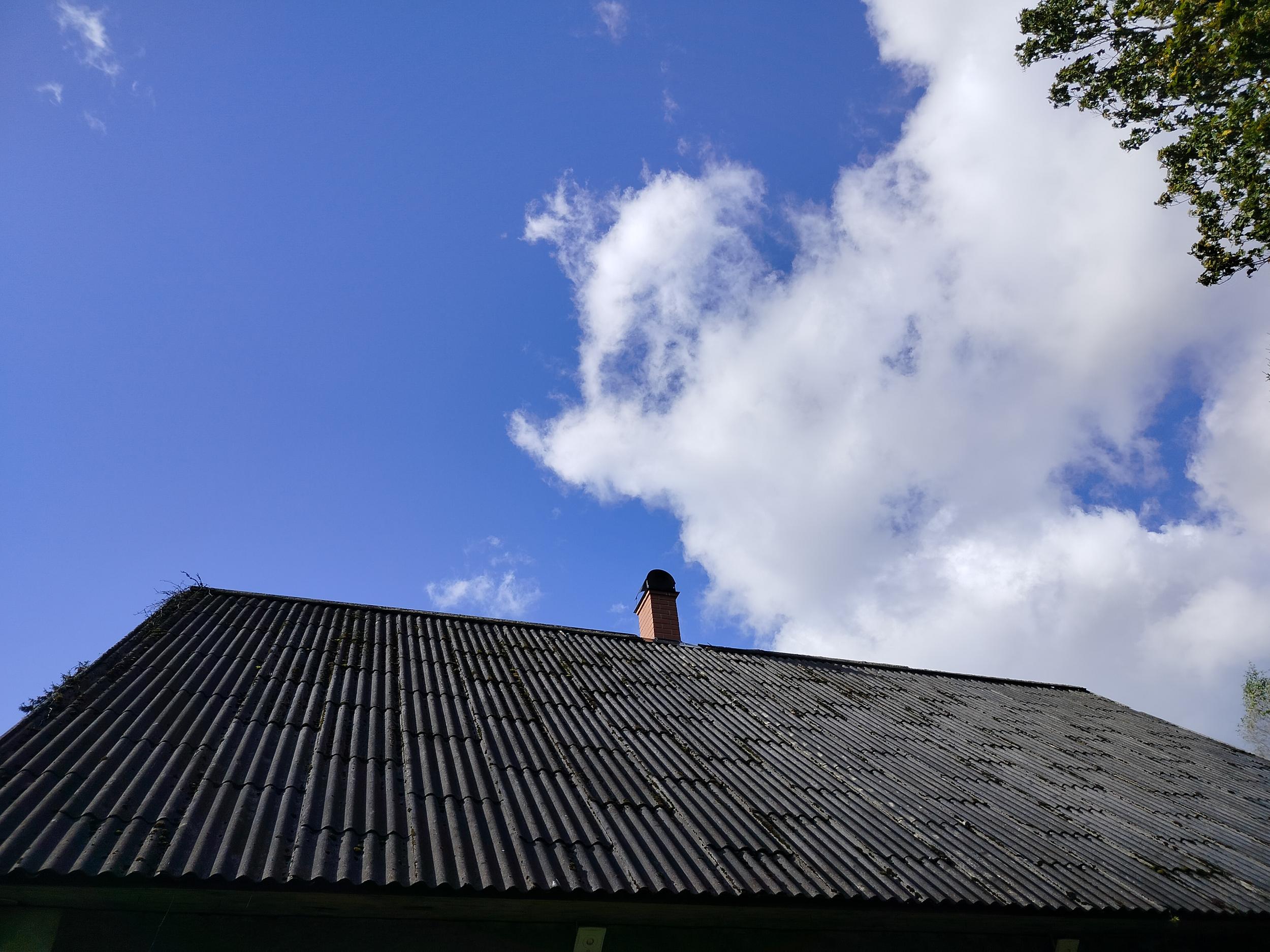 12m pikk vanem eterniitkatus, mida tuleks hoida purunemast. Praegu puidust harjalauad, millel peale äsjast korstnaehitust tühikud ja mis tuleks eemaldada. Korstnaplekid on paigaldatud.
