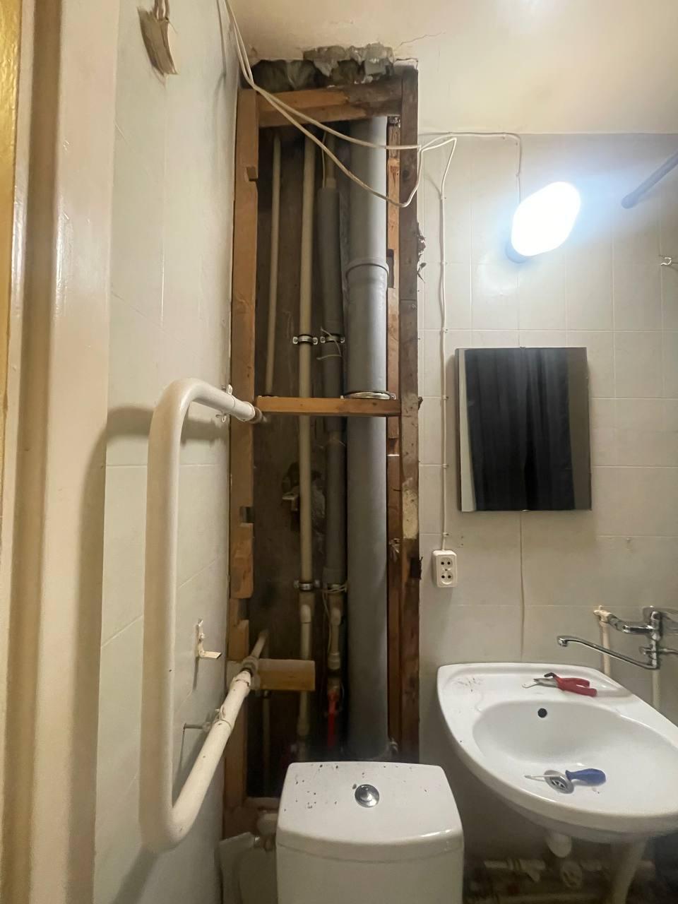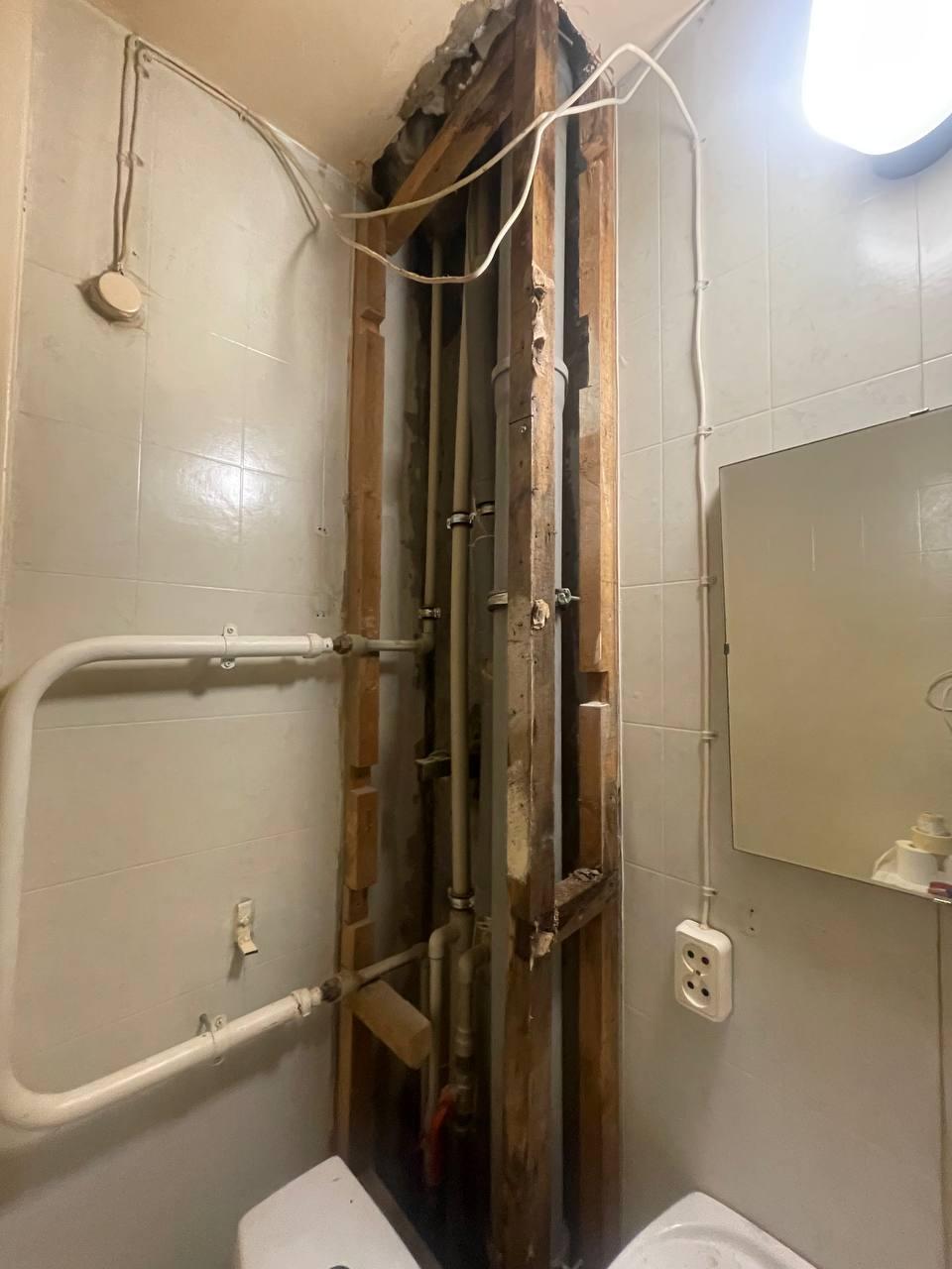 Vannitoa sein on WC püstaku kohalt lahti võetud torude remondiks.