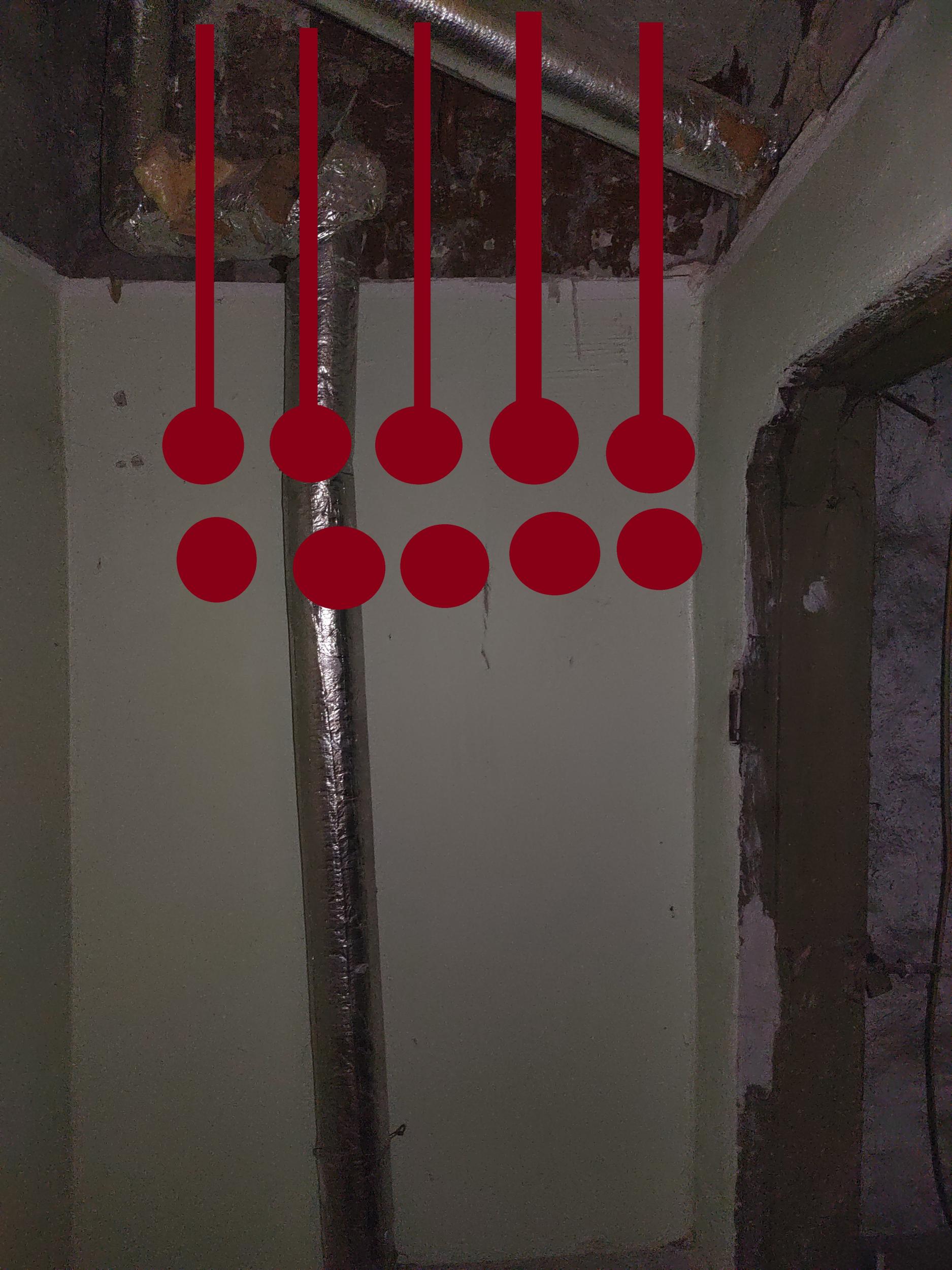I Uue veetorustiku rajamine keldrikorruselt kümnele korterile, sh igale korterile keldrikorruselt veemõõdikust oma veetoru. Veetoru viia ja ühendada korterisiseselt olemasoleva veemõõdiku asukohta. Lisatud failis on kaardistatud olemasolevate mõõdikute asukohad ligikaudselt, täpne ühenduskoht lepitakse kokku objektiga tutvudes. Keldrikorruselt torude läbiviik betoontrepist ja/või kanali raiumine paekivi müüri ca 0.5 m pikkuselt, edasi täielikult avatud palksein (vt ka lisatud pilt). Torud viiakse trepikojas palkseina peal ja sobivas kohas läbi seina korterisse.