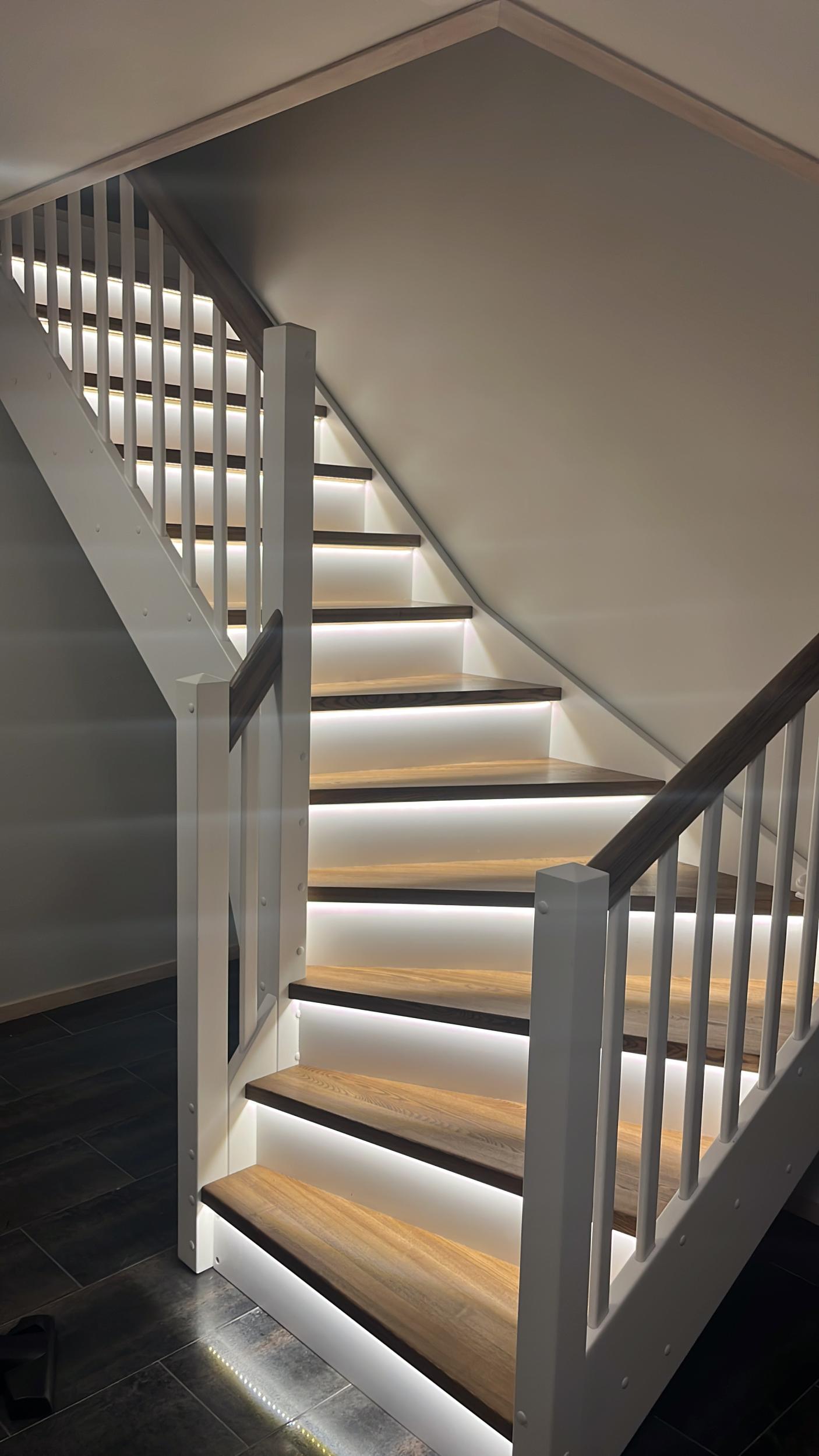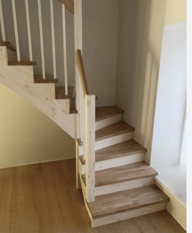 Valmistatakse ja paigaldatakse lahtine puidust trepp koos piiretega. Astmed ja käsipuud rustik tamm, lai lamell. Viimistlus õlivaha või lakk. Põsepuudja postid, piirdepulgad valge katva värvi all odavamast puidust. Astmete all LED ribad- valgustid. Toiteblokk (220-12v)ülemise astme all.Paigaldus kuuaja jooksul peale ettemaksu.