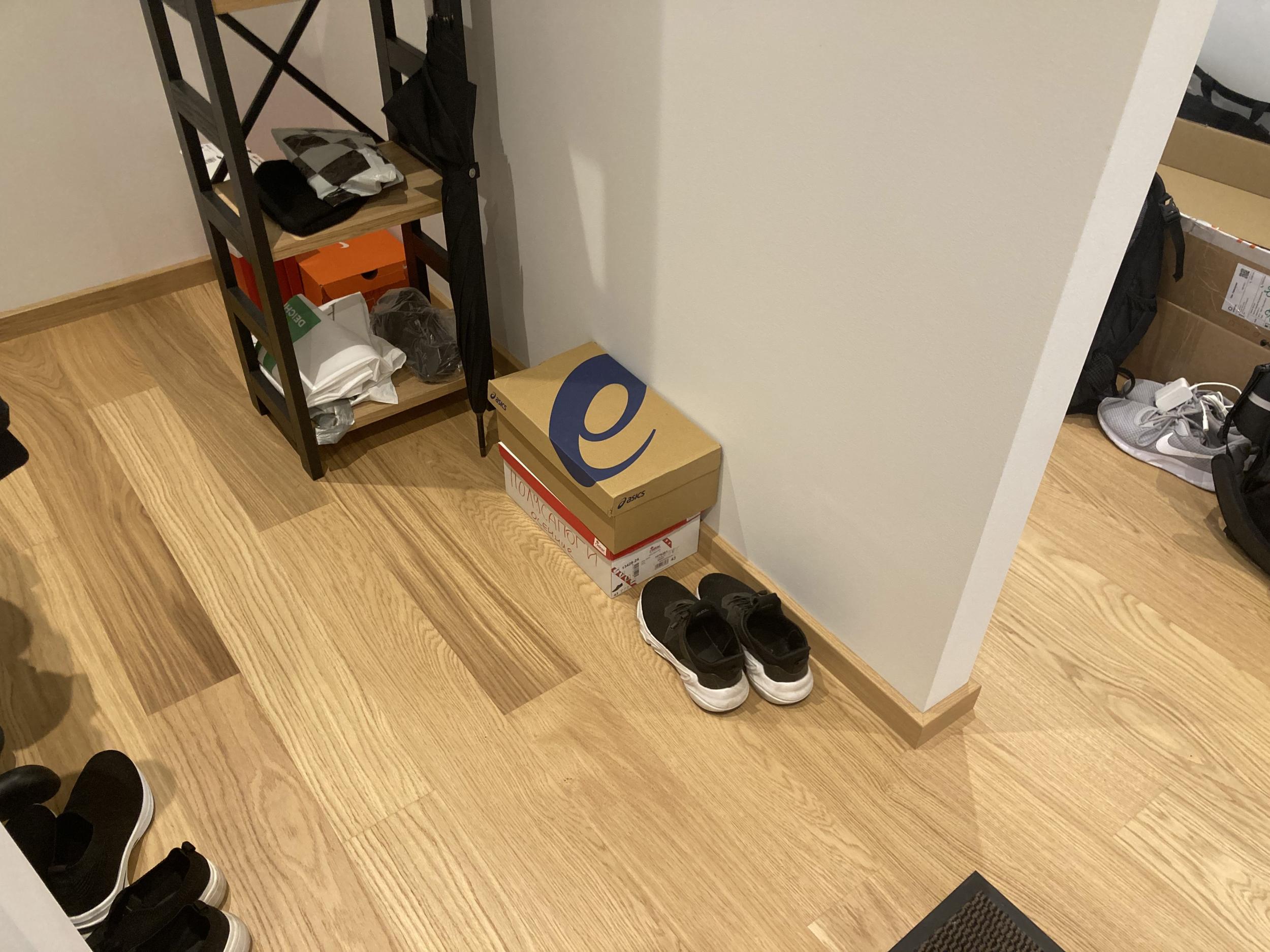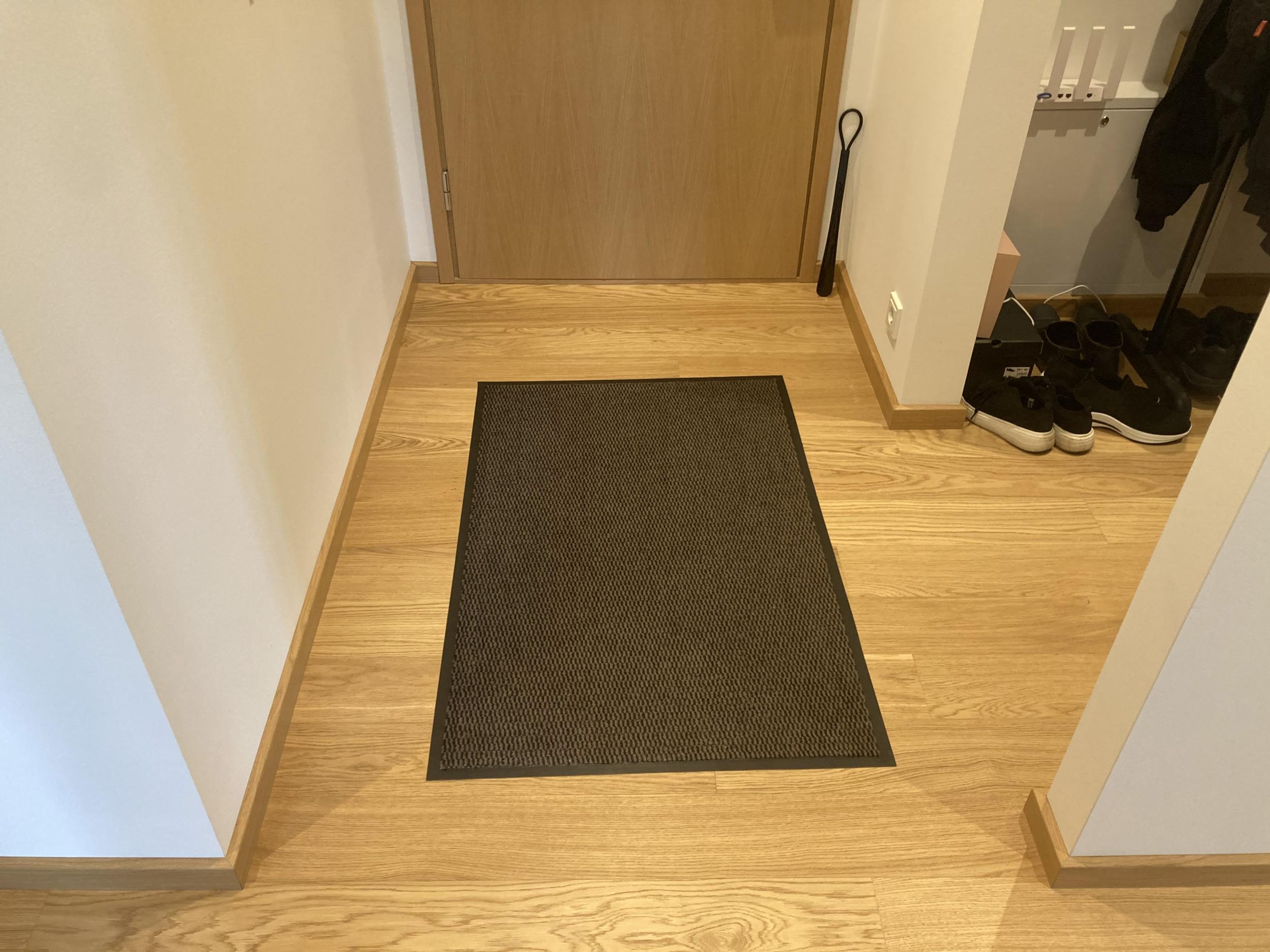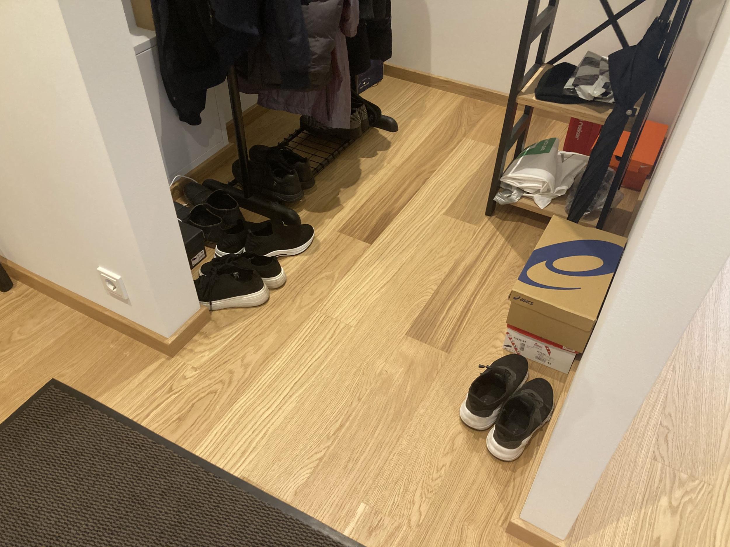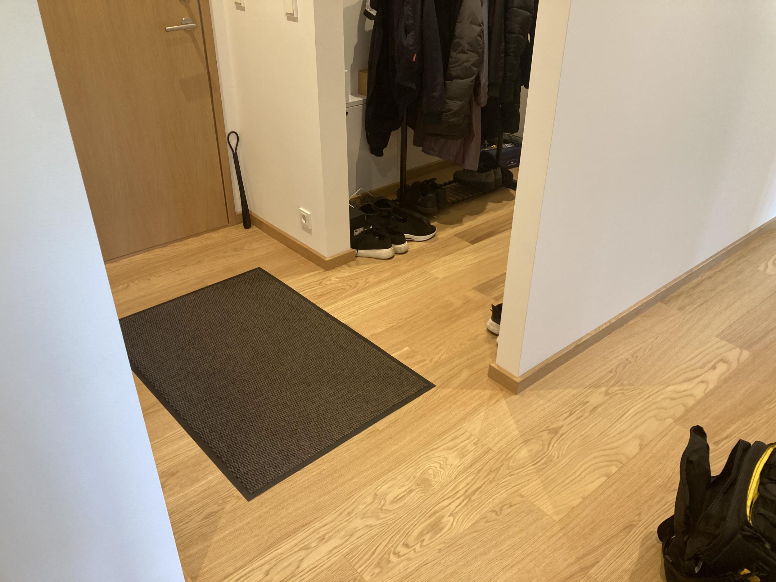 Sooviksime plaatida meie korteri esikut, kus on hetkel parkett. Esiku pind koos garderoobiga on ligikaudu 5,3 m² (vt manuses lisatud pilti).