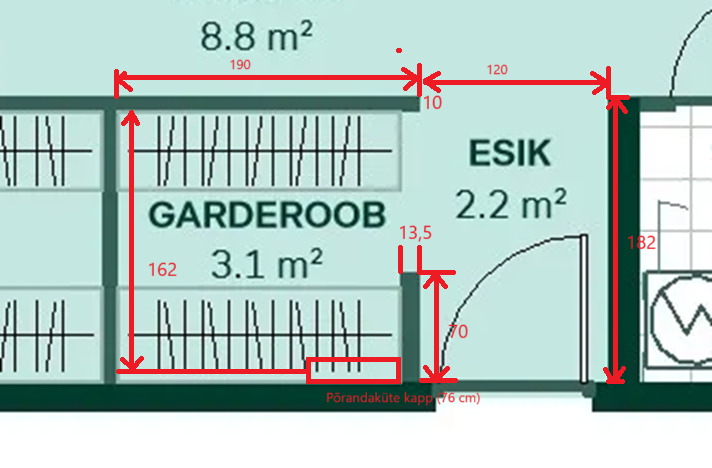 Lisainfo: korteris on põrandaküte, esiku ja koridori piiril on laudade ühenduskoht, mis võimaldab terve parketilaua eemaldamist ilma lõikamata. Praegune parkett on Golvabia 5G lukusüsteemiga laudparkett, mis paigaldatakse “ujuvana”. Lauad on ühendatud omavahel liimivabalt e. klikk-ühendusega ja neid ei kinnitata aluspõranda külge.