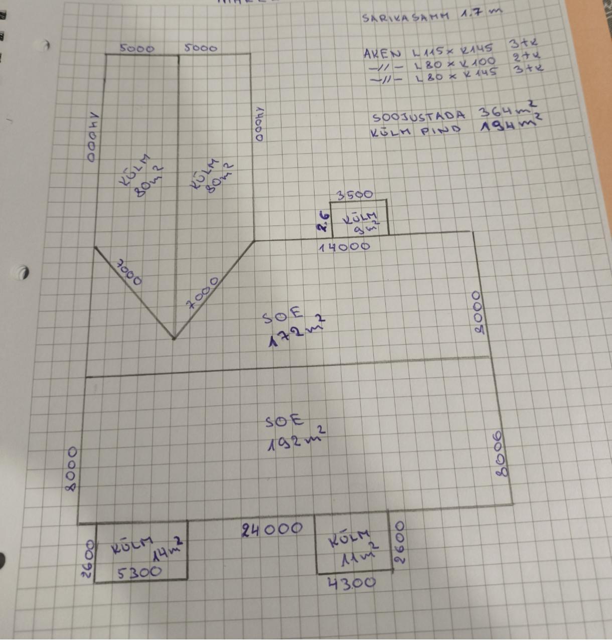 Katus 558m2 kolme kordne sindel maha,lisada olemas olevatele sarikatele kahes kihis 50x150 prussid,rihtida,soojustada puiste villaga 364 m2(150m3), hingav aluskate,distants,roov ja klassik plekk sinna kuuluvaga! Samuti vahetada ka välja katuse aknad,suurused joonisel paremas üleval nurgas. Summa kogu projektile või orienteeruv ruutmeetri hind
