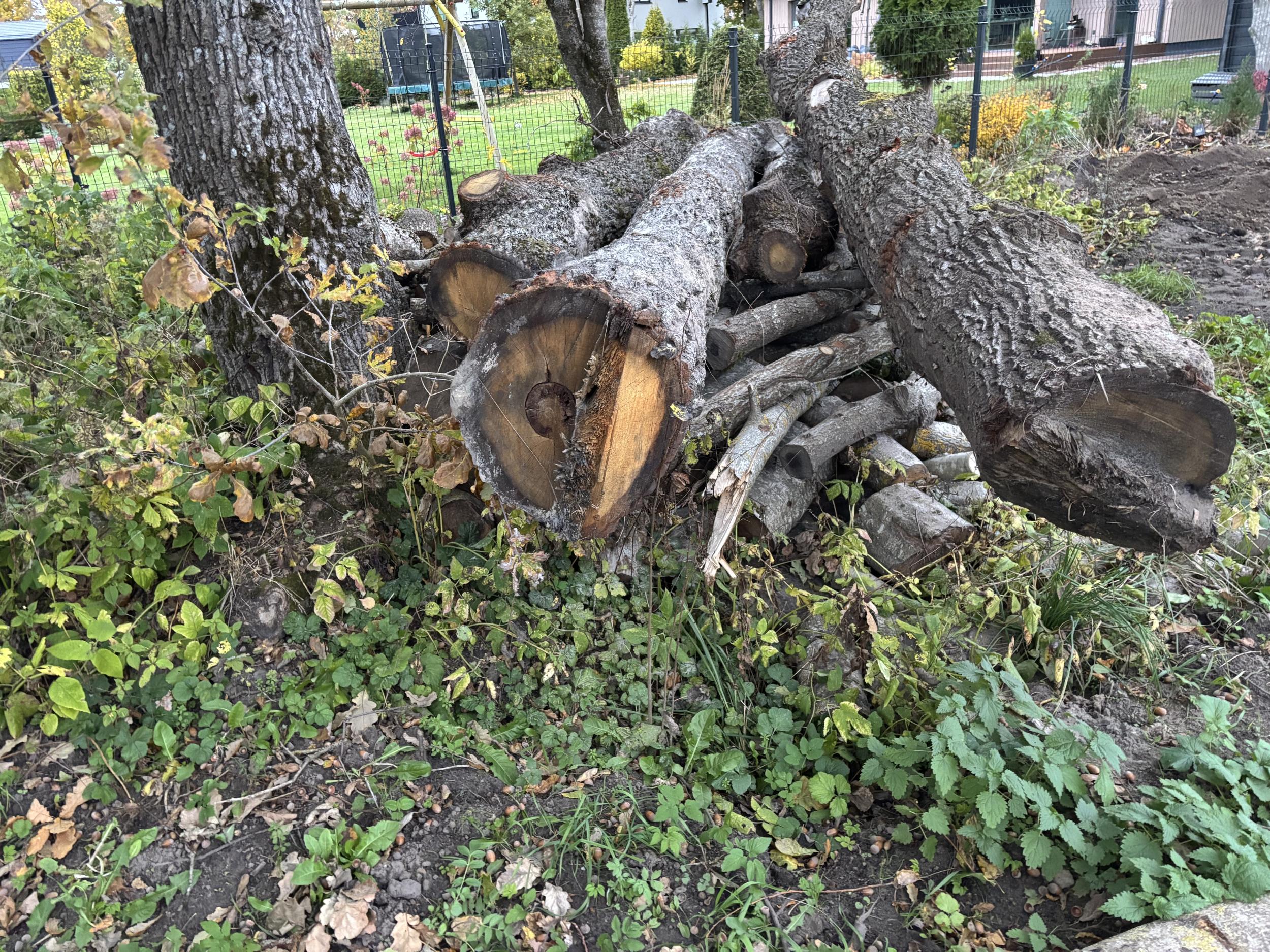 Palkide pakkudeks saagimine. 4 suuremat palki ja u 10 peenemat puud.
