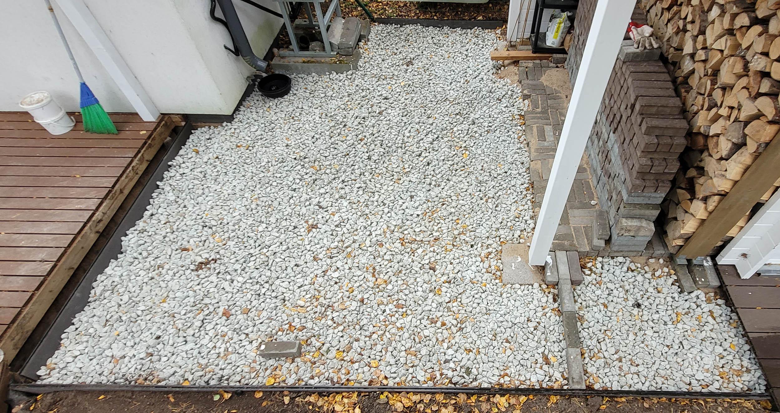 Platsi suurus 11m2. Kild vaja tasandada (kalded), tihendada, lisada sängituskiht õigete kalletega, paigaldada tänavakivid. Kivid on olemas, platsi servas, sängituskihi toob töö tegija.