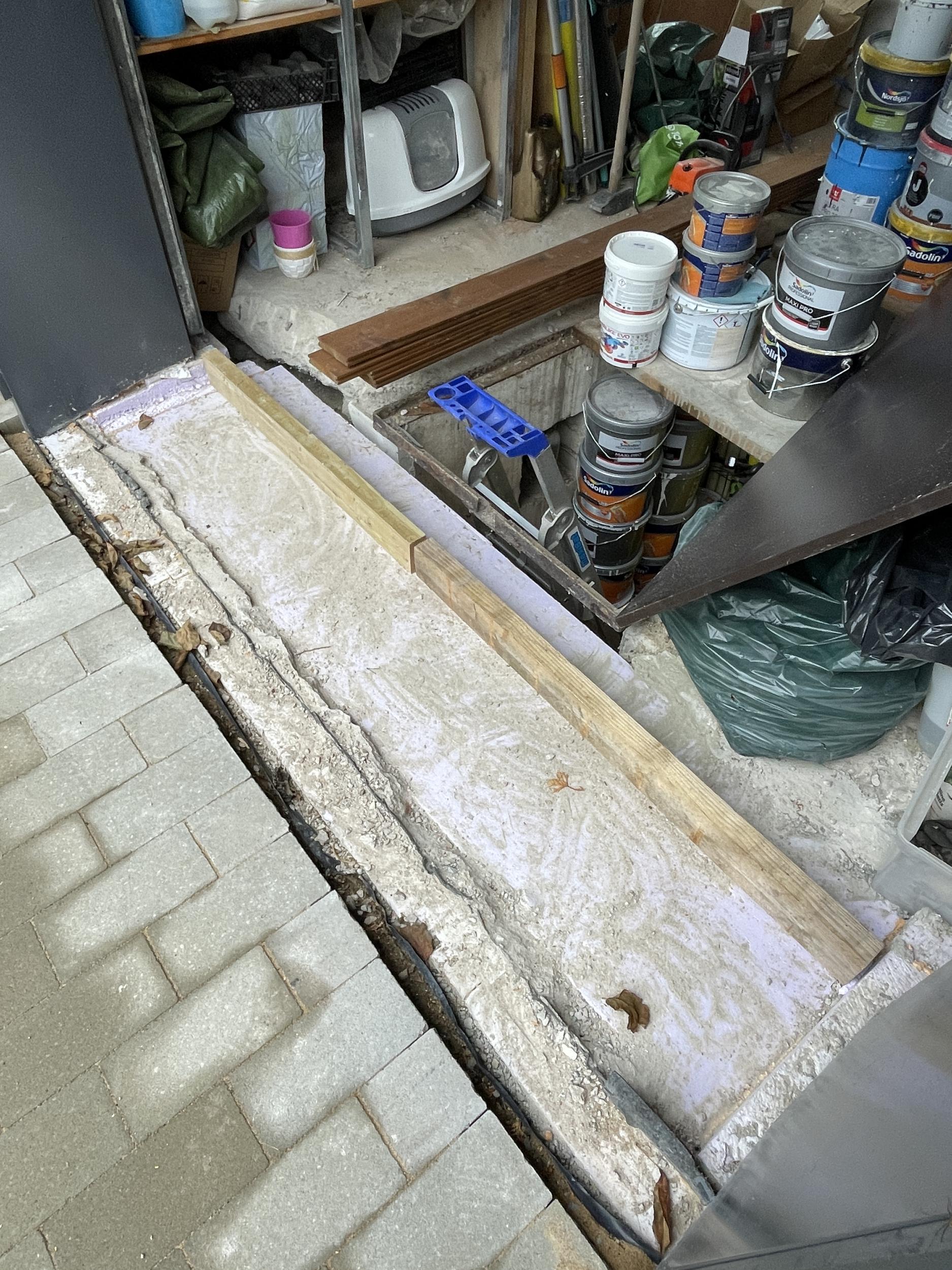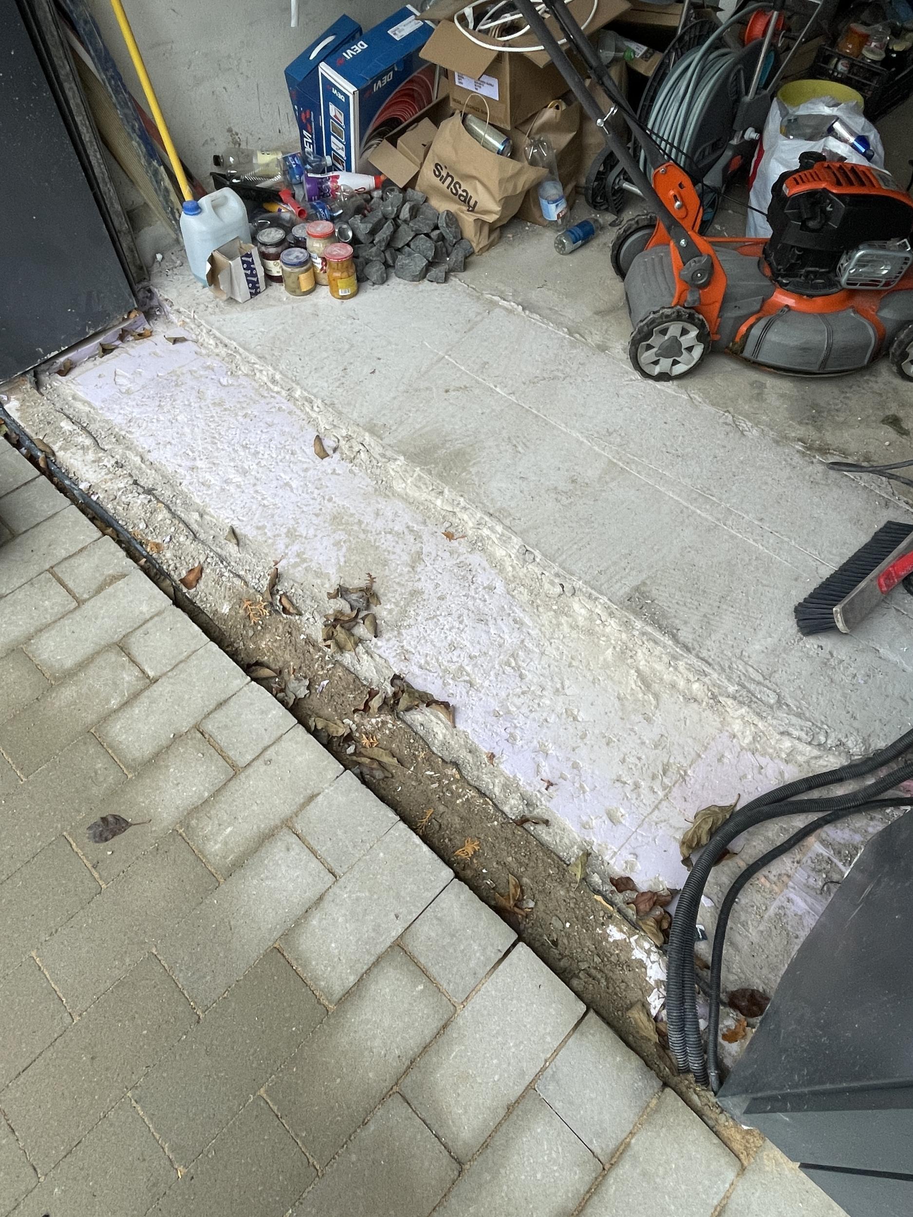 Kahe garaaži uksealuse betoonpõranda valamine. Betoon C30/37, keskkonnaklass XF3, fiibriga, õhku sisseviiv lisaainega. Paksust saab teha vaid 70 mm +\-. Ca 3m x 1 m x 2 põrandat ehk ca 0,5 m3 betooni.