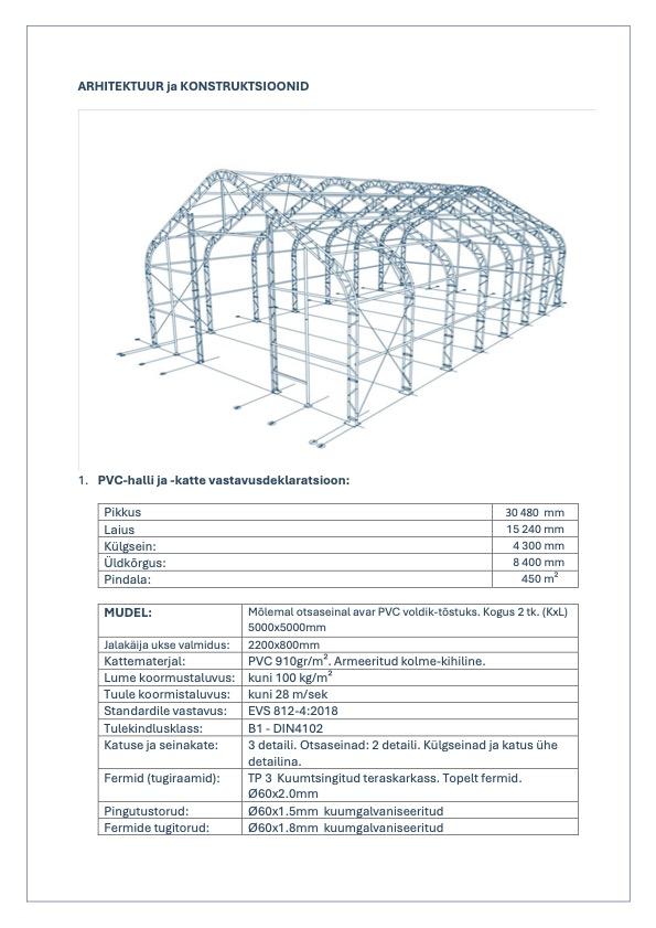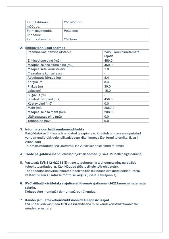 Kogu muu täpsem info on hanke juures olevas failis. Kui on küsimusi, siis helistada või kirjutada. Eelistame pakkujaid, kellel on sarnase viilhalli püstitamisest varasem kogemus.